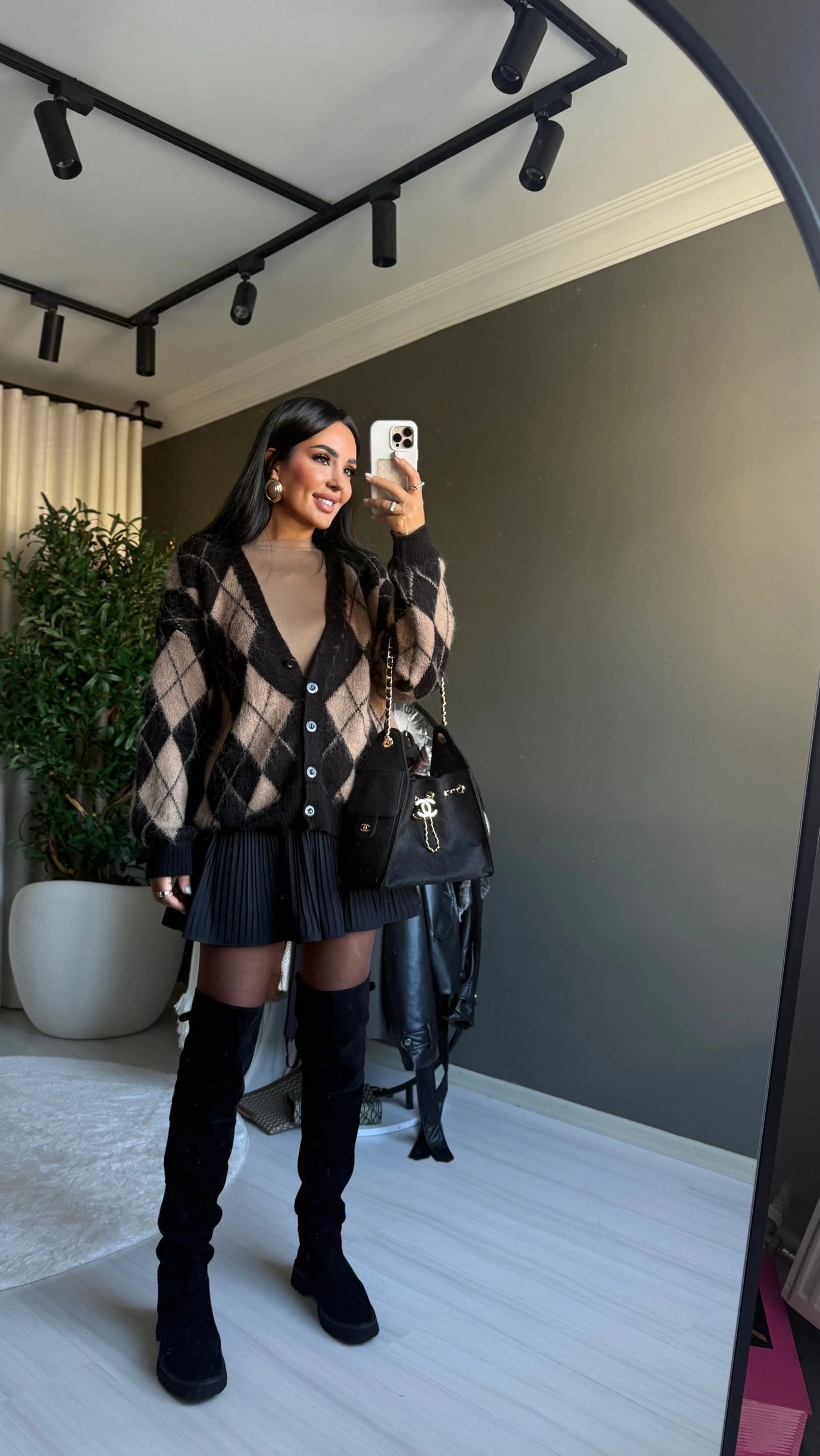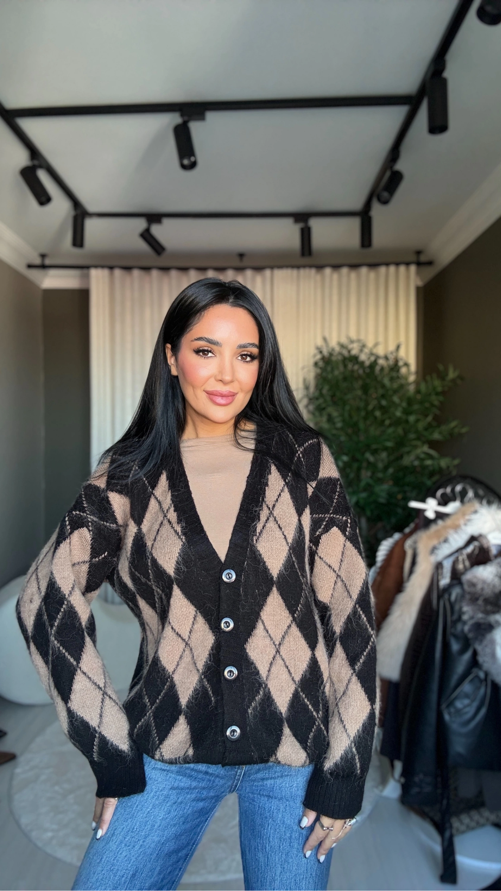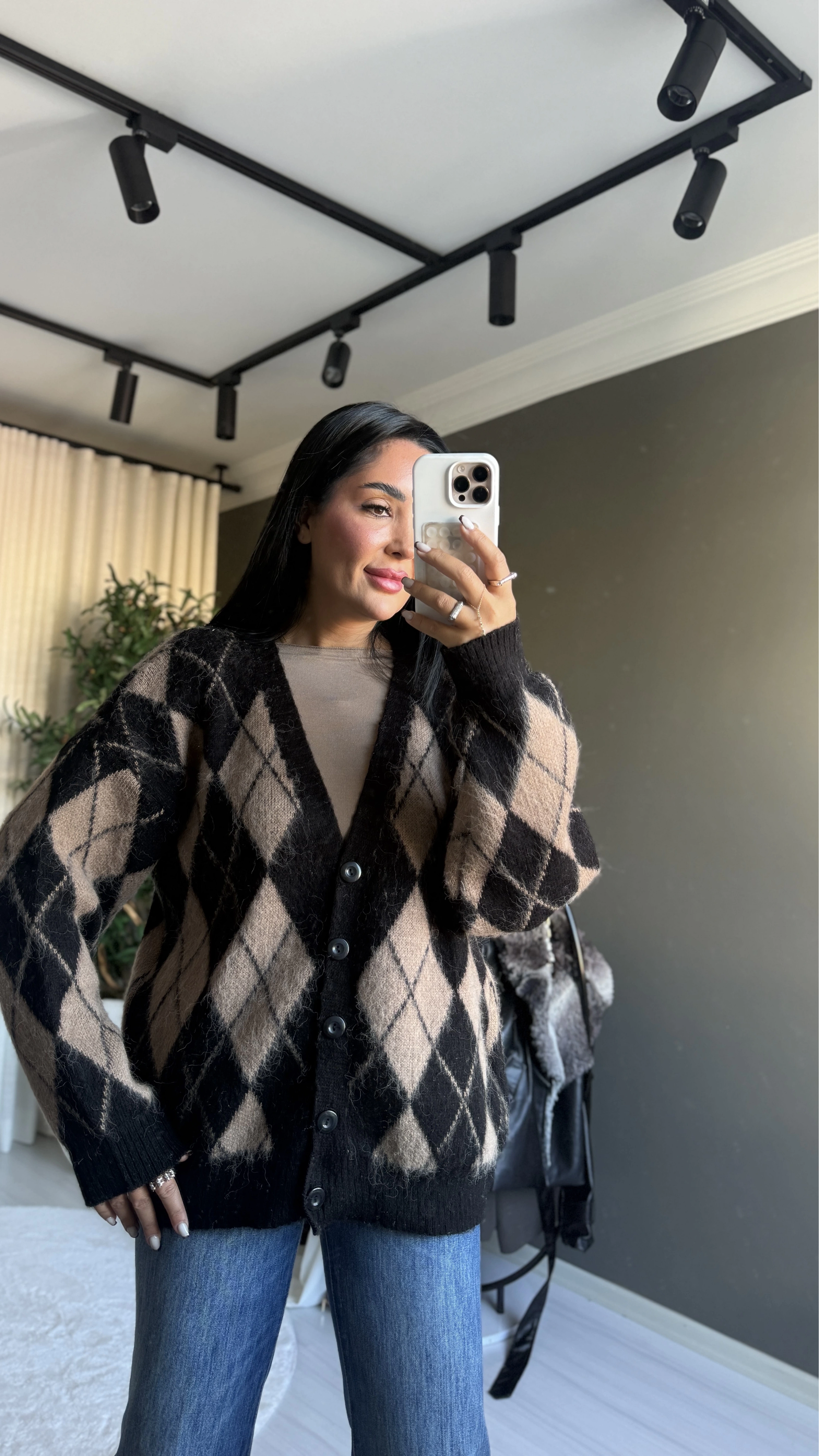 Bu sezonun trend parçası: kahverengi baklava desenli oversize hırka. Oversize kesimiyle hem rahat hem stil sahibi bir görünüm sunan bu model, önden düğmeli tasarımıyla günlük kullanımda pratiklik sağlıyor. Zarif fakat dikkat çeken baklava deseni sayesinde klasik hırka modellerinden ayrılıyor. Soğuk günlerde katmanlı kullanım için ideal; sakin tonlarıyla dolabınızda uzun süre yer bulacak bir yatırım parçası.