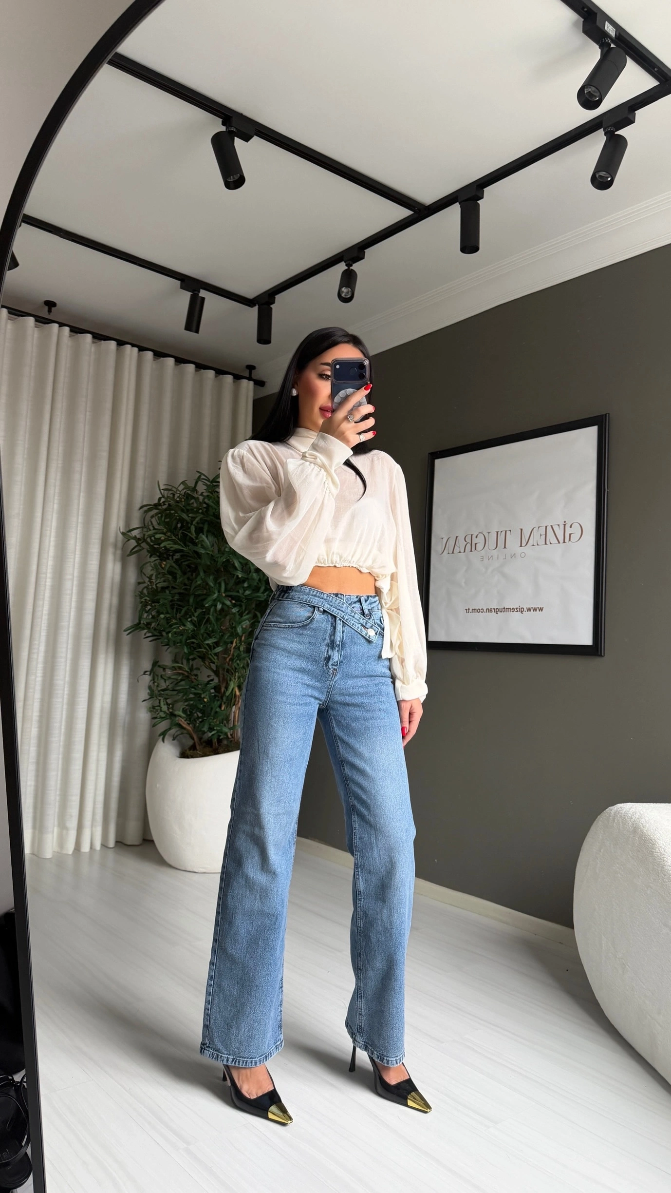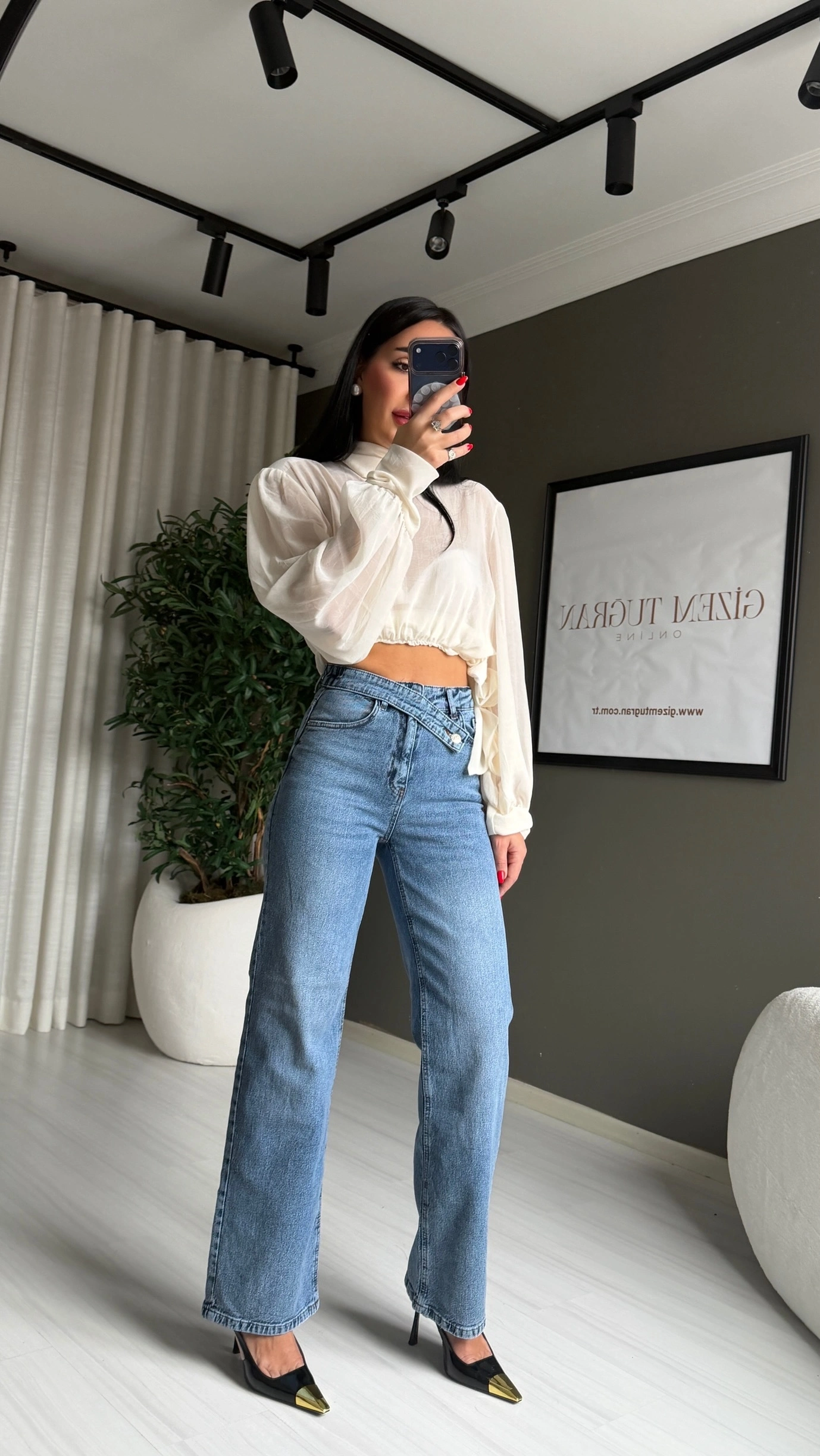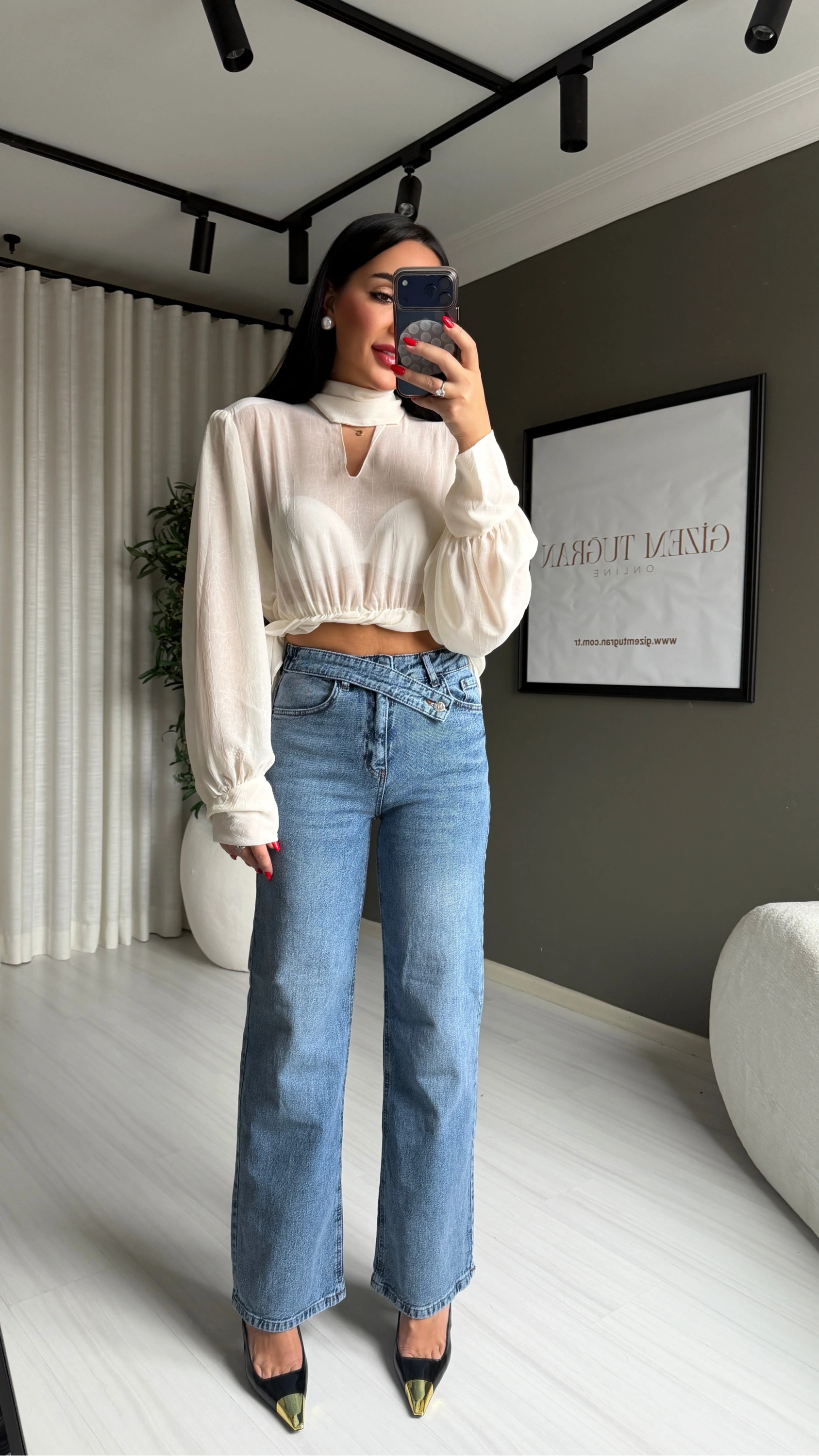 Hem rahat hem de stil sahibi görünmek isteyenler için tasarlanan çapraz kemerli kadın jean pantolon, dolabınızın en sevilen parçalarından biri olmaya aday.