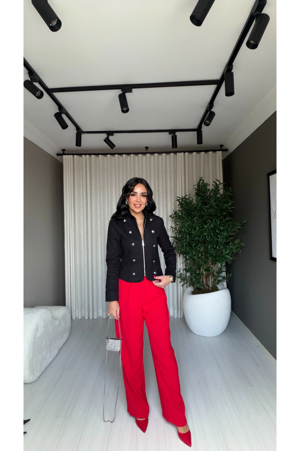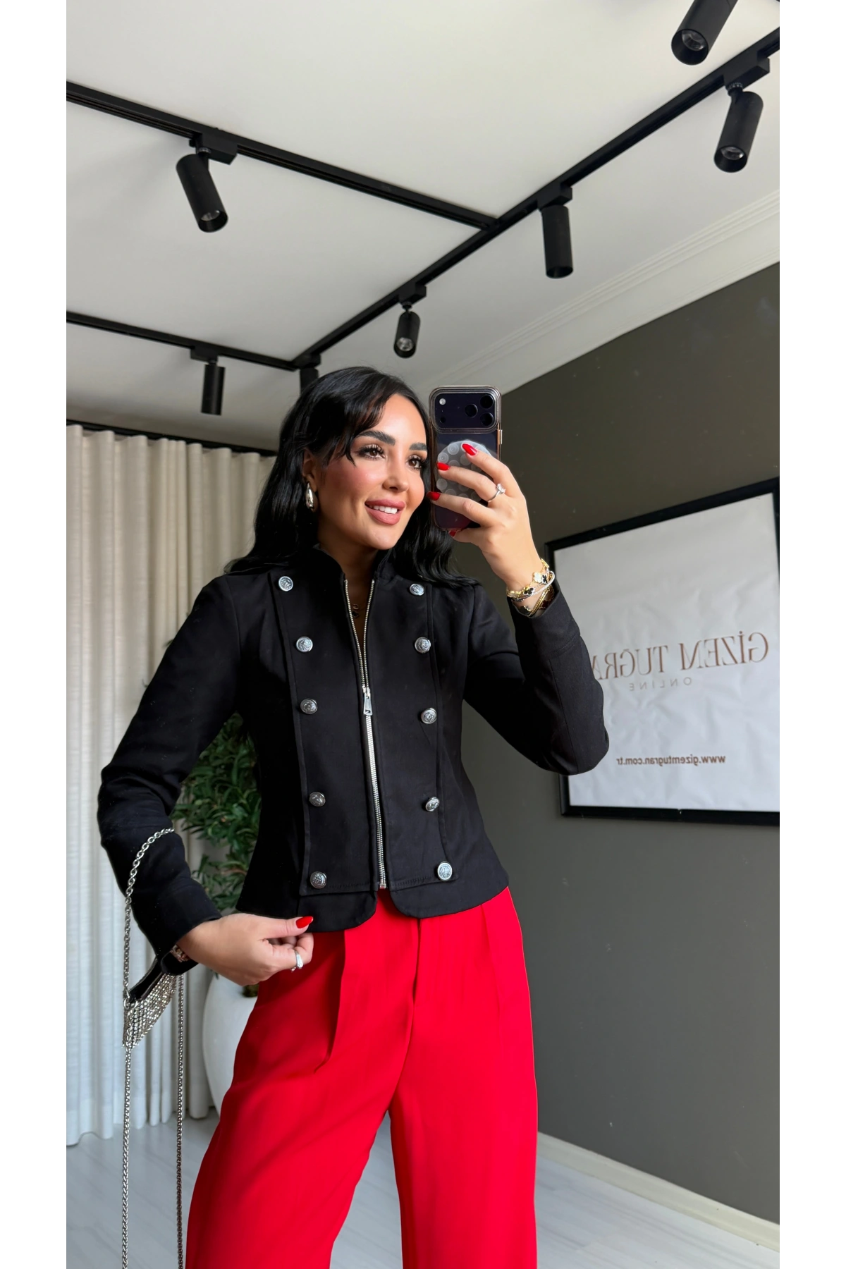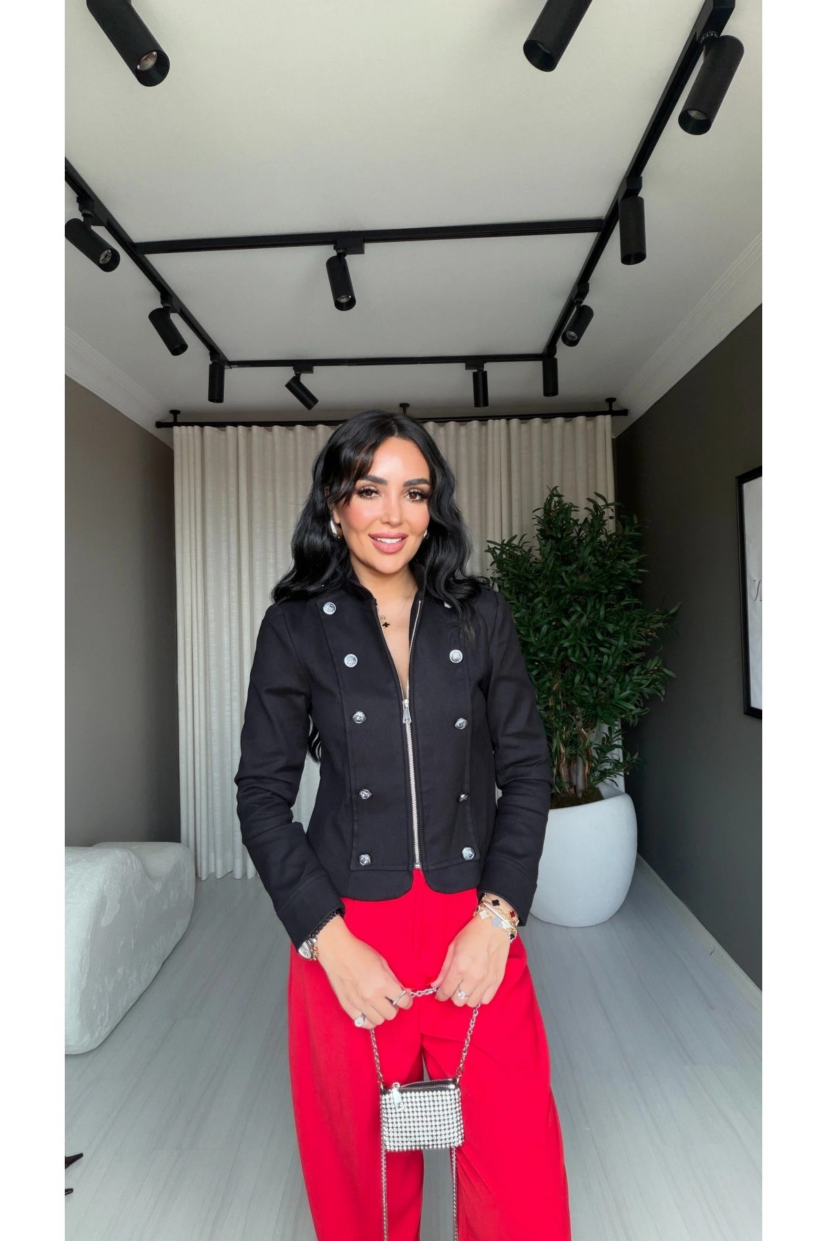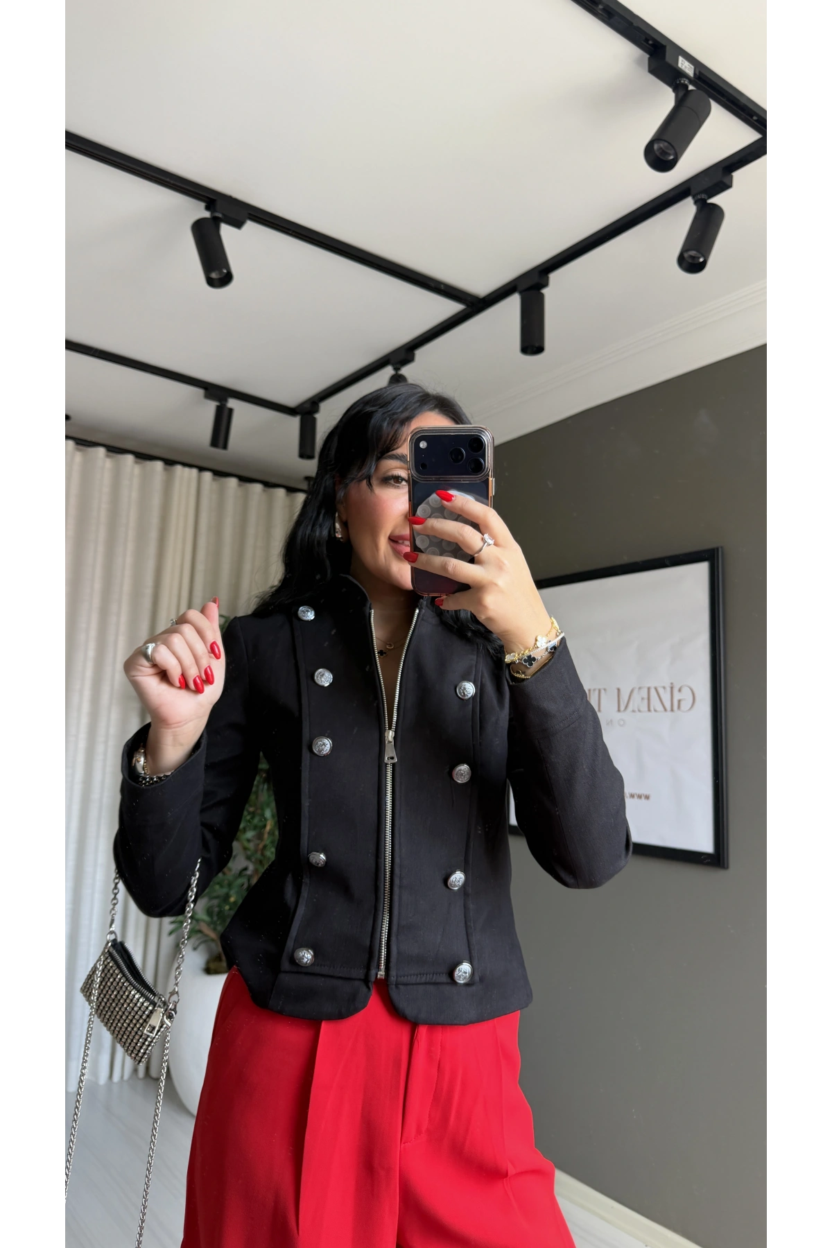 Pamuklu Kumaş Zımbalı Siyah Blazer Ceket
