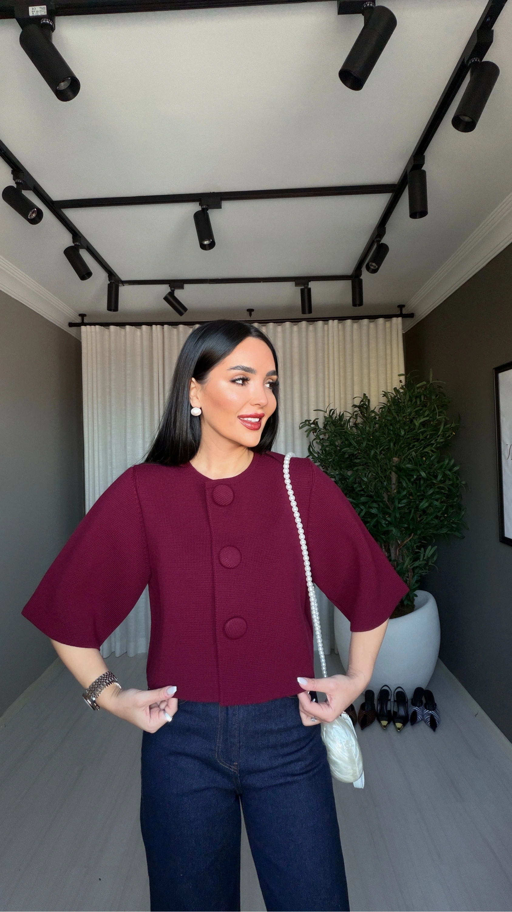 Sıcak ve dikkat çekici tonu ile öne çıkan <b>bordo renk triko hırka</b>, sonbahar ve kış kombinlerine sofistike bir dokunuş katar. Jean pantolon, etek veya kumaş pantolonlarla kolayca kombinlenebilir.