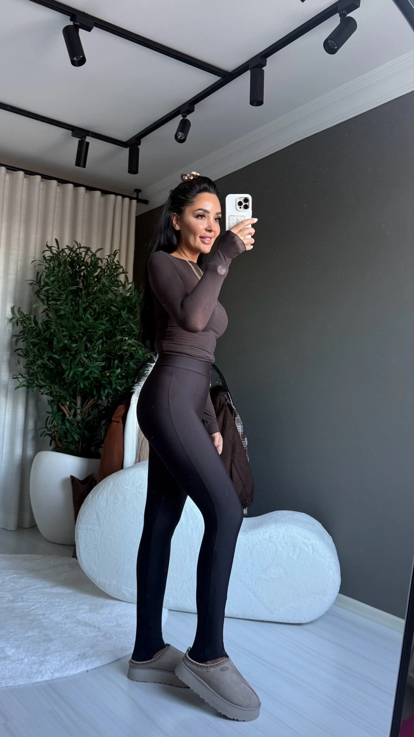 Eğer gardırobunuzda hem stil sahibi hem fonksiyonel bir alt giyim parçası görmek istiyorsanız, bu fermuar detaylı kahverengi tayt, dikkat çekici detayları ve konforuyla sizin için ideal bir seçim olabilir. Stilinizde fark yaratmak için doğru bir adım.