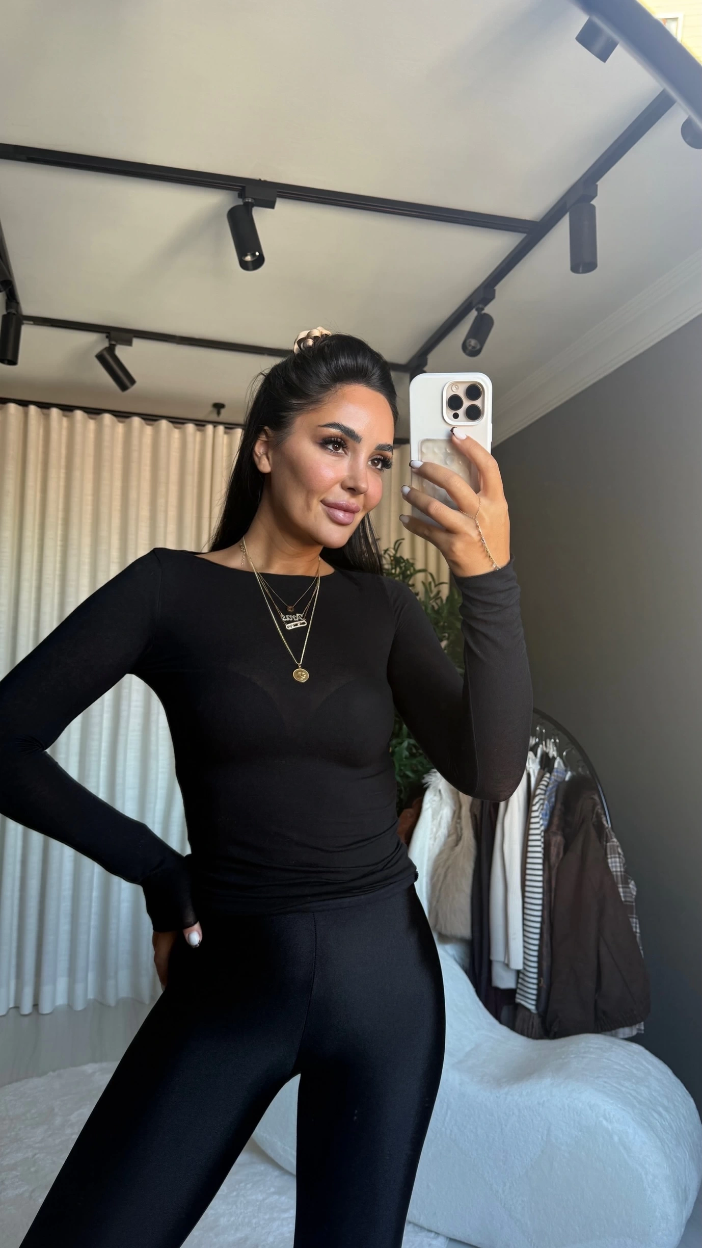 Günlük kombin için: Siyah body üzerine açık renk yüksek bel pantolon ve sneaker ile rahat şıklığı yakalayabilirsiniz.