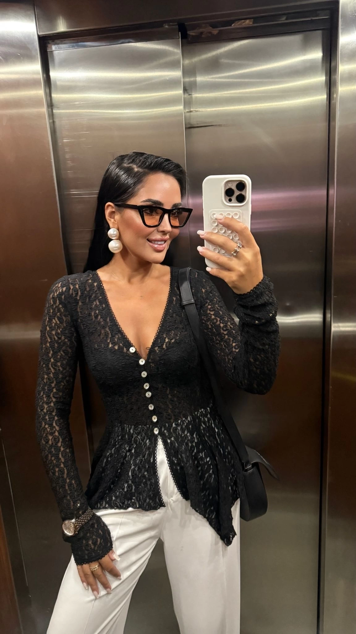 Dilvin Düğmeli Dantel Hırka Siyah