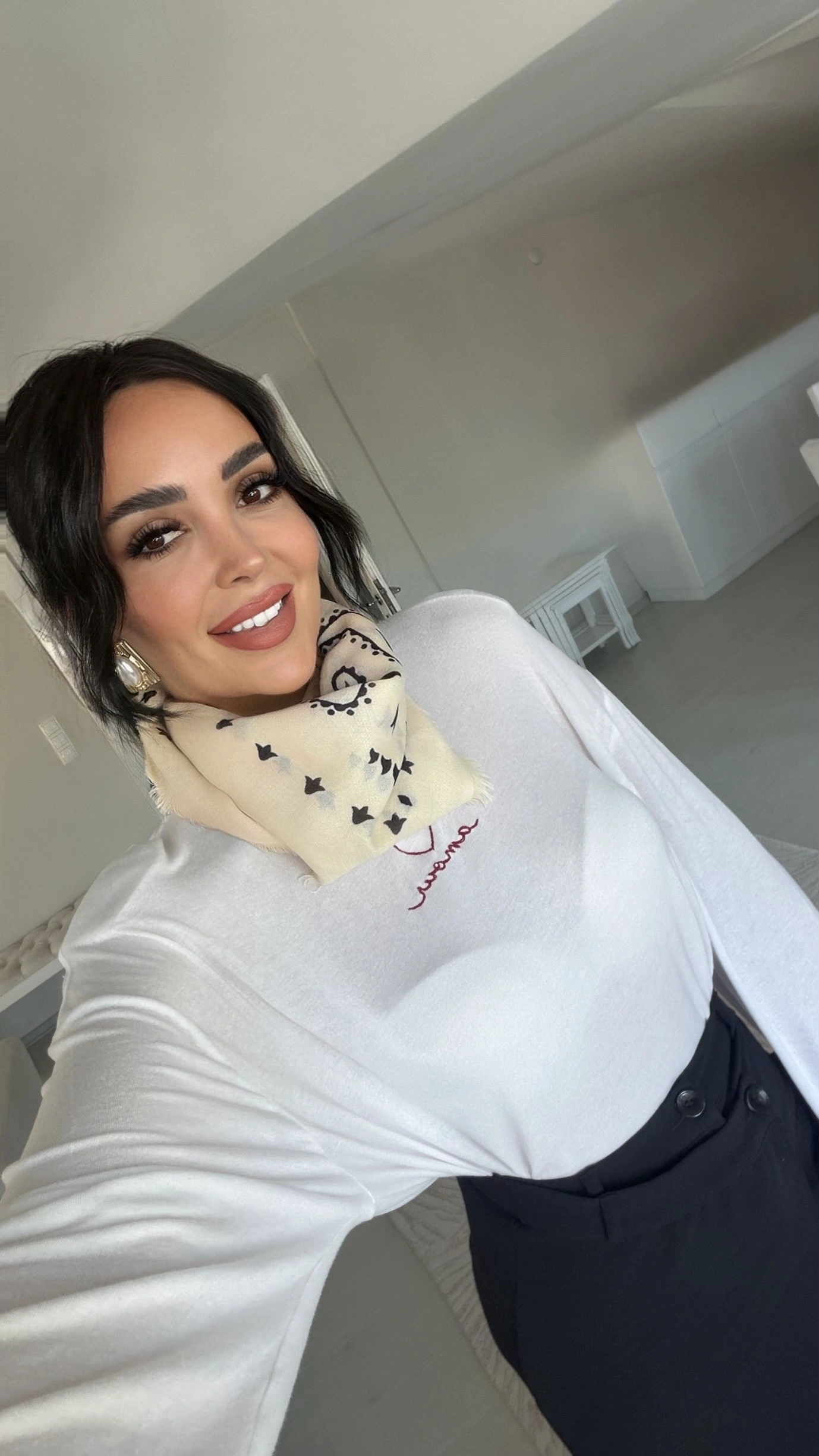 Zamansız beyazın saflığı üzerine işlenen etnik dokunuşlar, bu şalı yalnızca bir aksesuar olmaktan çıkararak güçlü bir stil ifadesine dönüştürüyor. Minimal ama karakter sahibi tasarımı, modern lider ruhunu yansıtırken; detaylarda kullanılan derin siyah geçişler ve dramatik iz efektleri, kararlılık ve iz bırakma metaforunu simgeler.