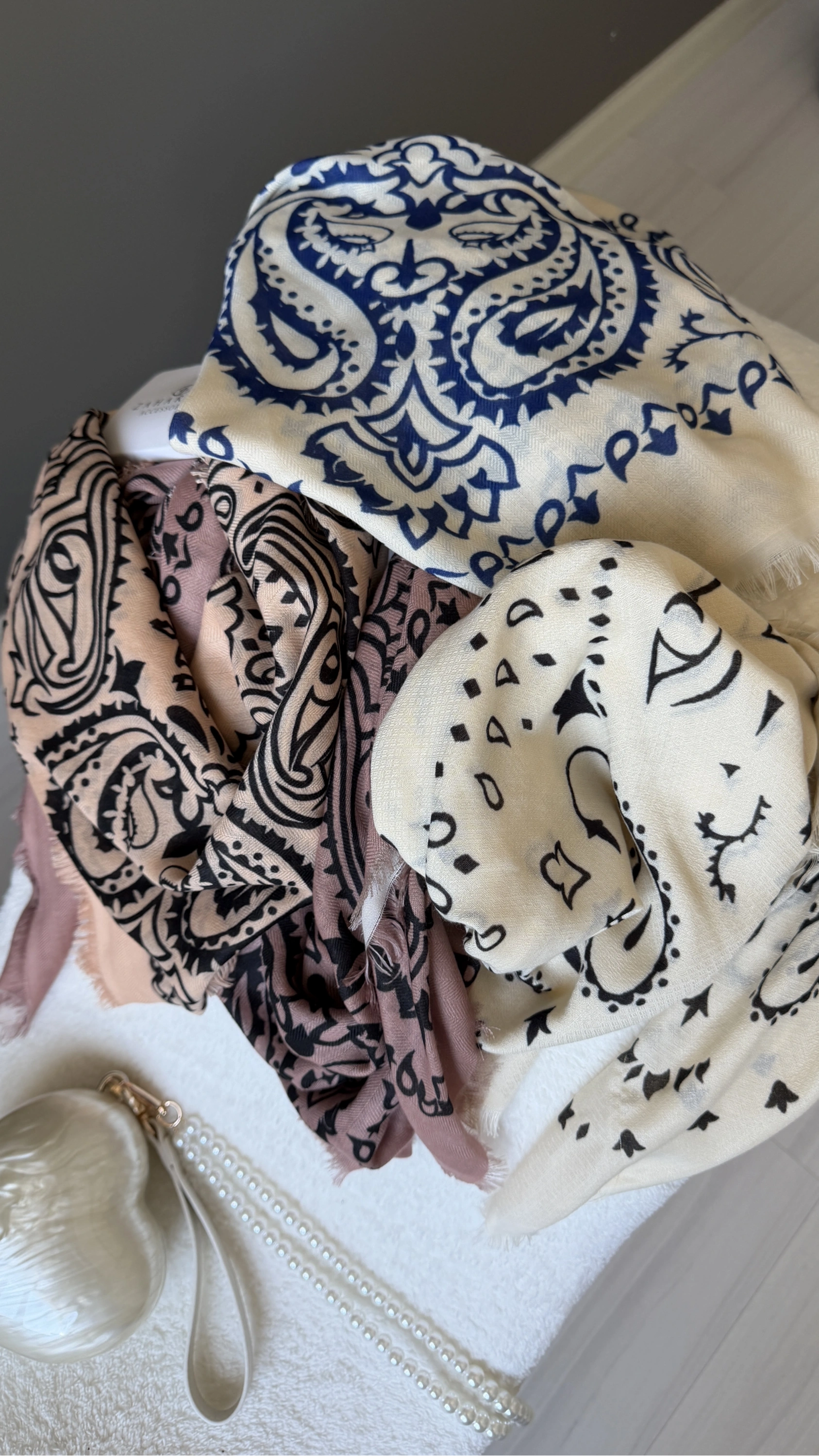 Şal üzerindeki kontrast dokular, hayatın keskin dönemeçlerini ve geride bırakılan izleri estetik bir anlatıya dönüştürür. Bu güçlü görsel dil, özellikle yüksek profil duruşu benimseyen, sade ama etkileyici stil arayan bireyler için tasarlanmıştır.