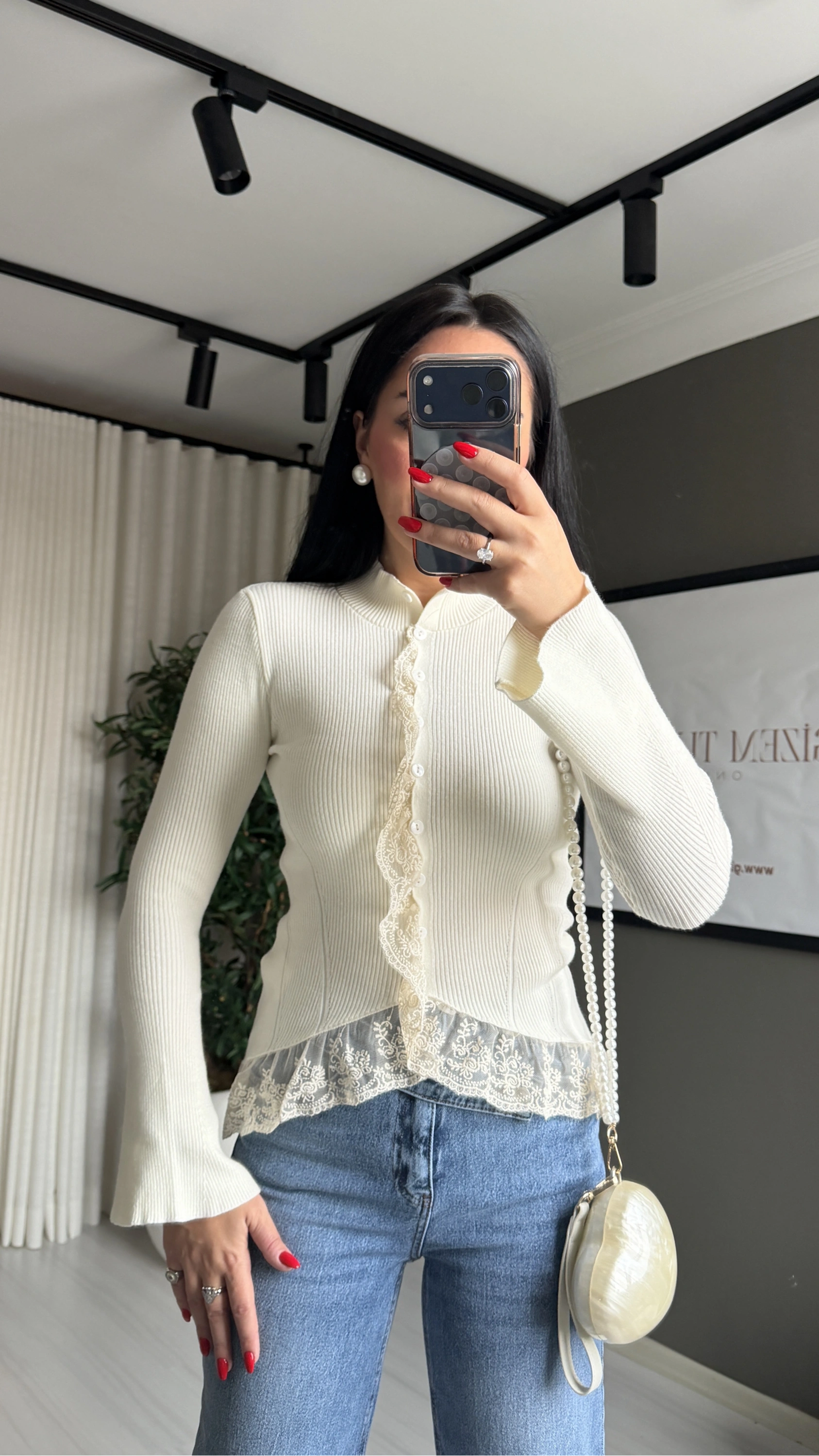 Fitilli Dantel Detaylı Ekru Hırka – Zarafetin ve Konforun Buluştuğu Parça