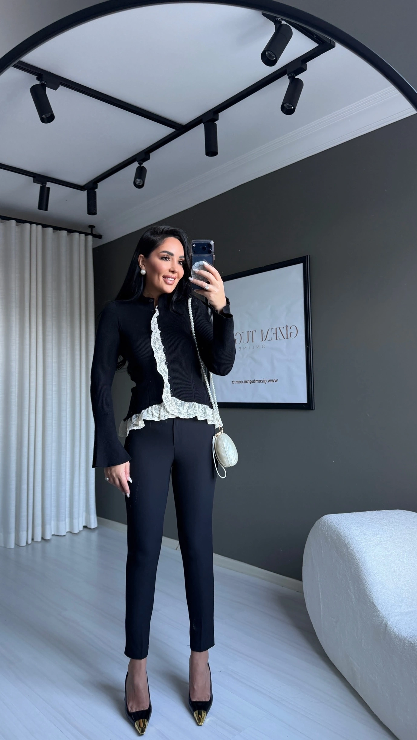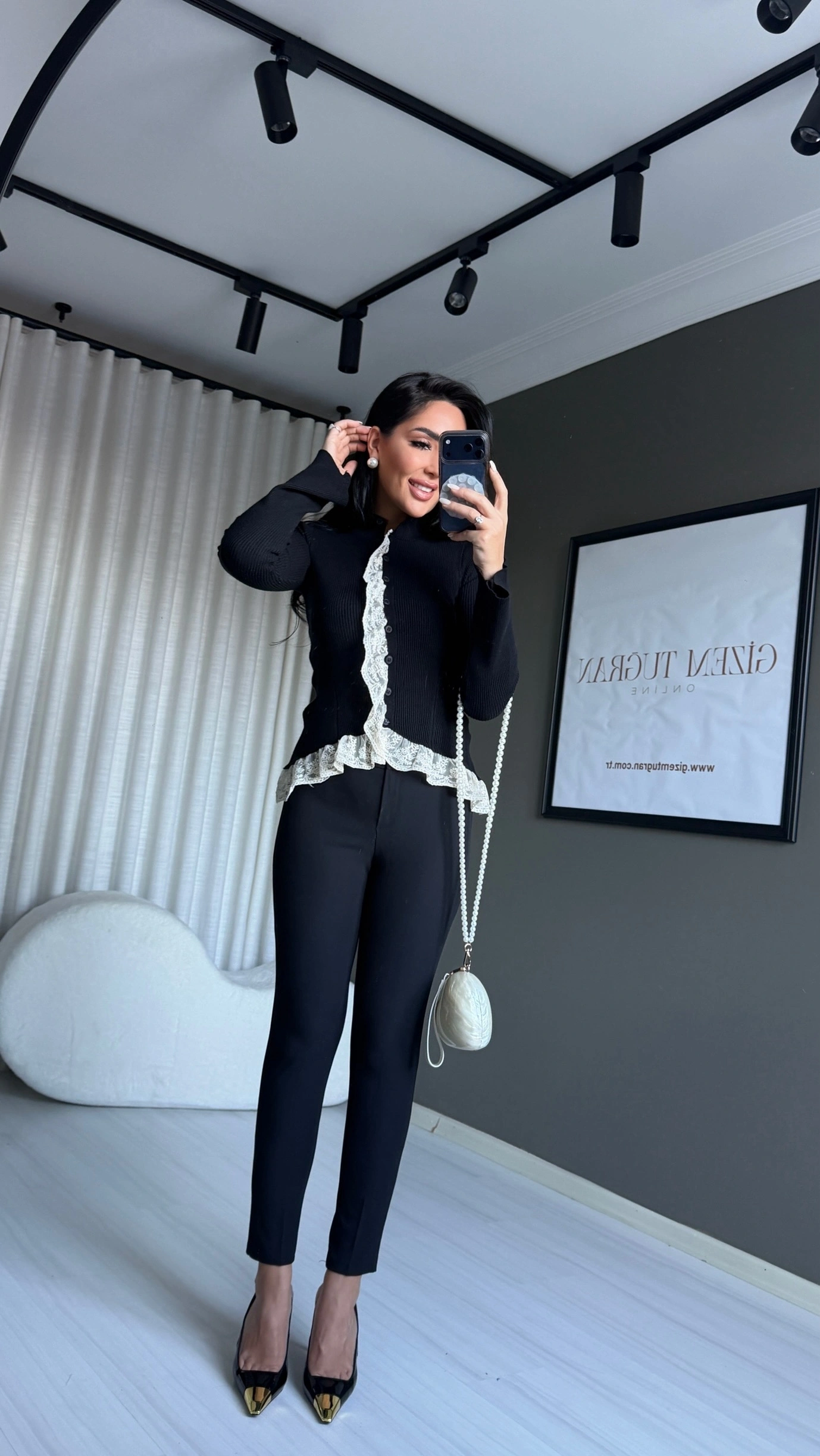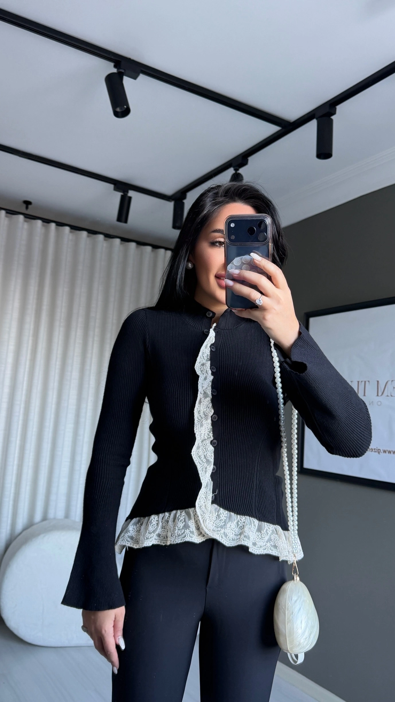 Şıklığı ve rahatlığı bir arada sunan <b>fitilli dantel detaylı siyah hırka</b>, hem günlük kullanım hem de özel kombinler için ideal bir tercihtir. Zamansız tasarımı sayesinde uzun süre keyifle kullanabileceğiniz stil sahibi bir parçadır.