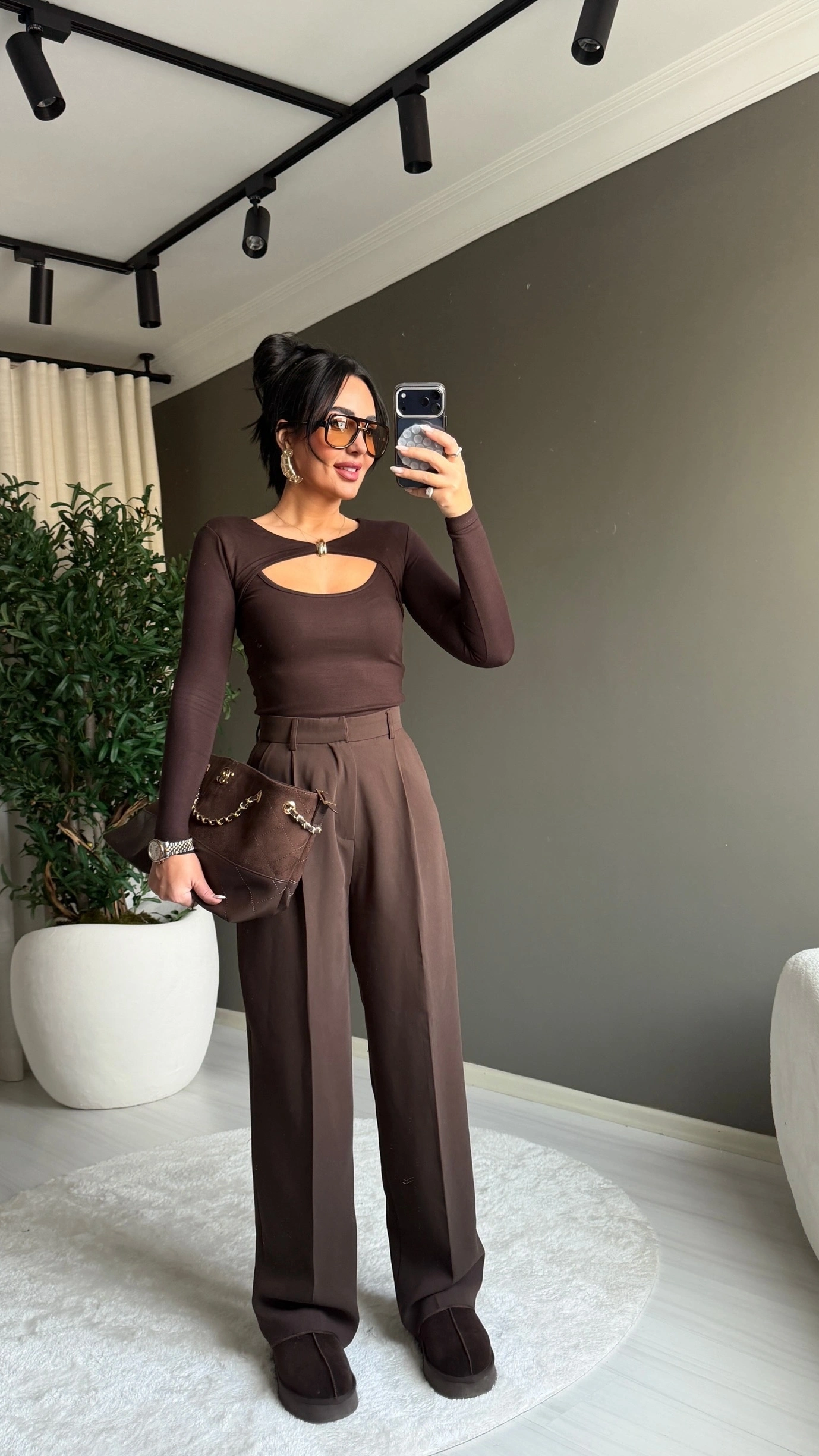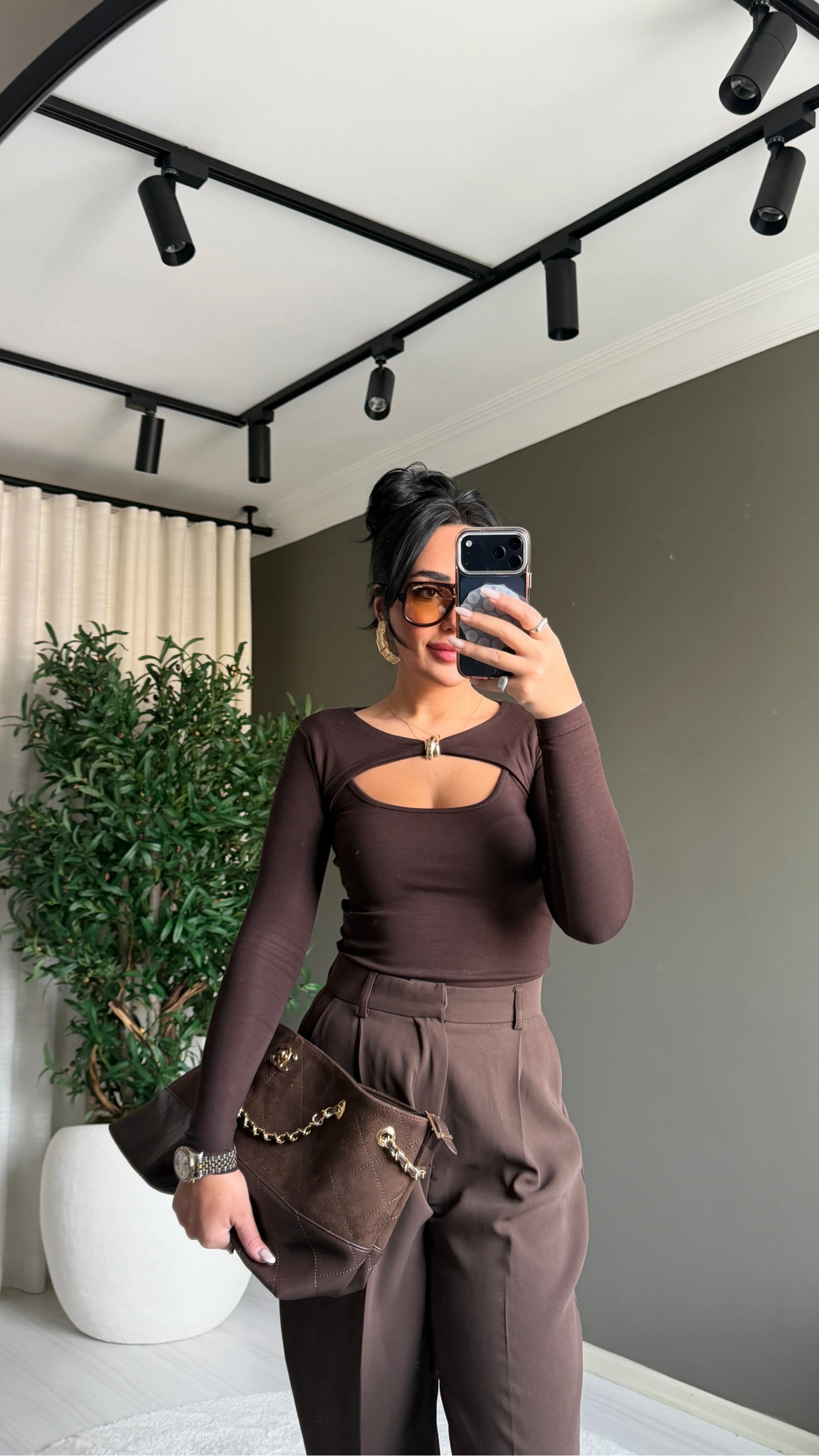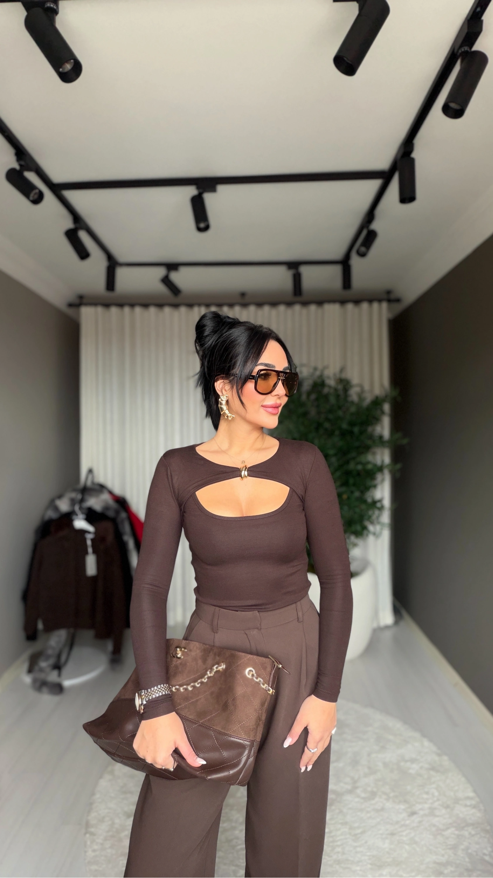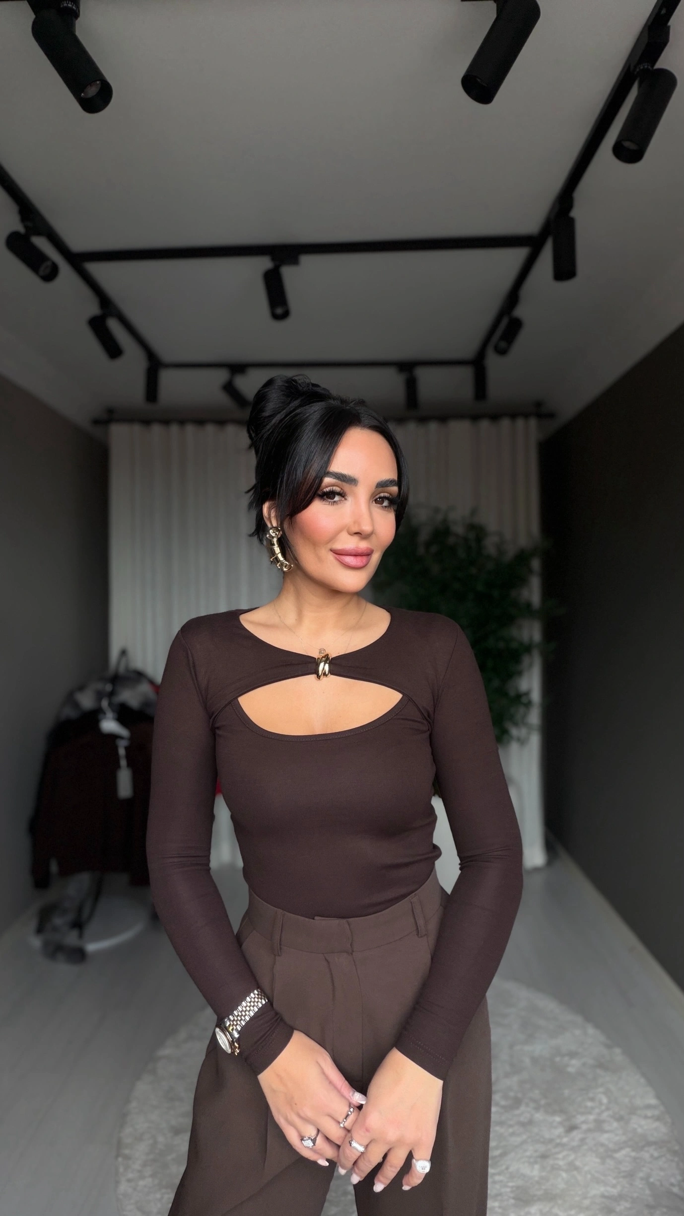 Zarif detayları ve modern duruşuyla öne çıkan bu gold tokalı kahverengi body, kombinlerinize sofistike bir dokunuş katıyor. Günlük şıklıktan özel davetlere kadar her ortamda rahatlıkla tercih edebilirsiniz.