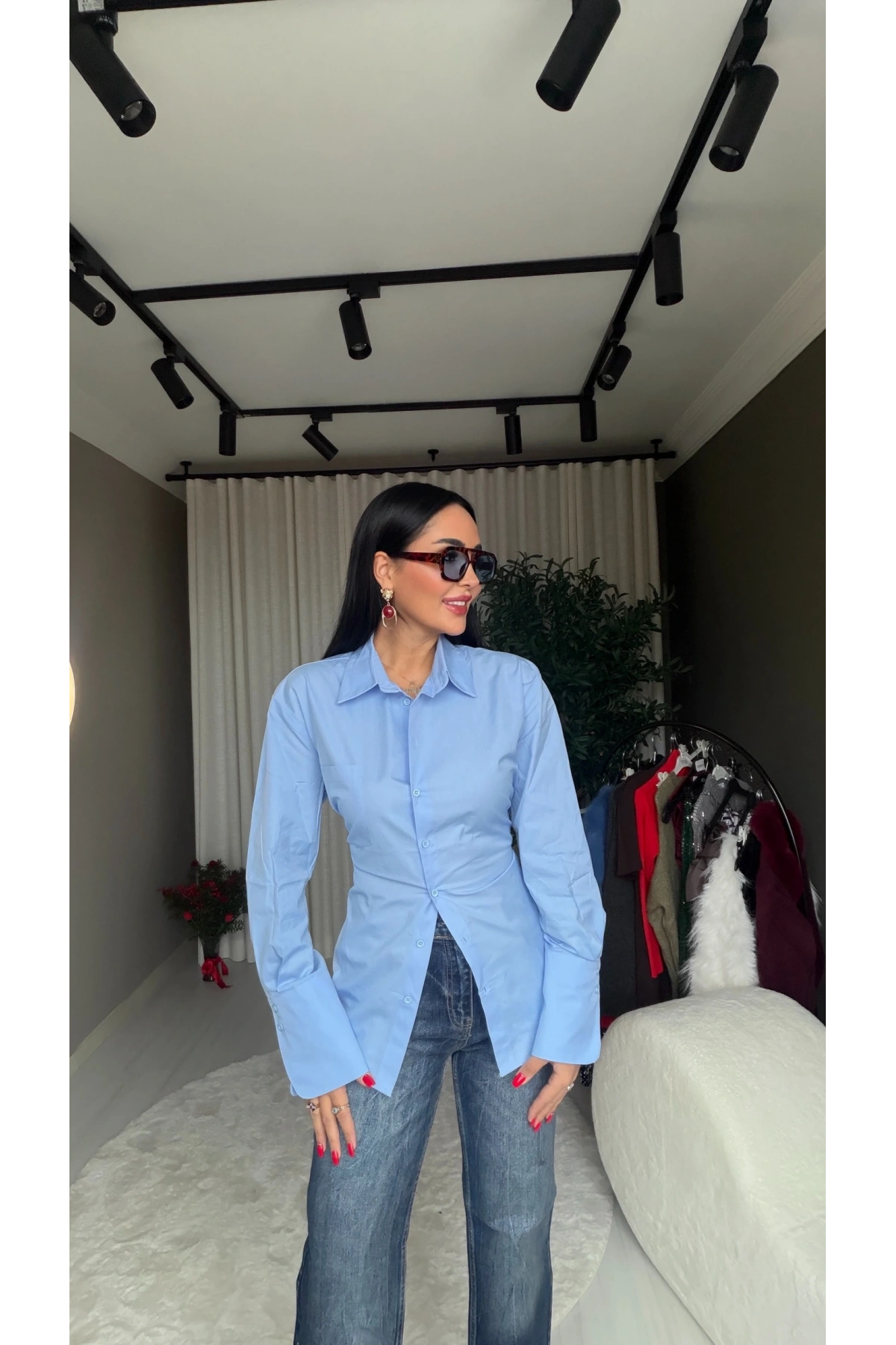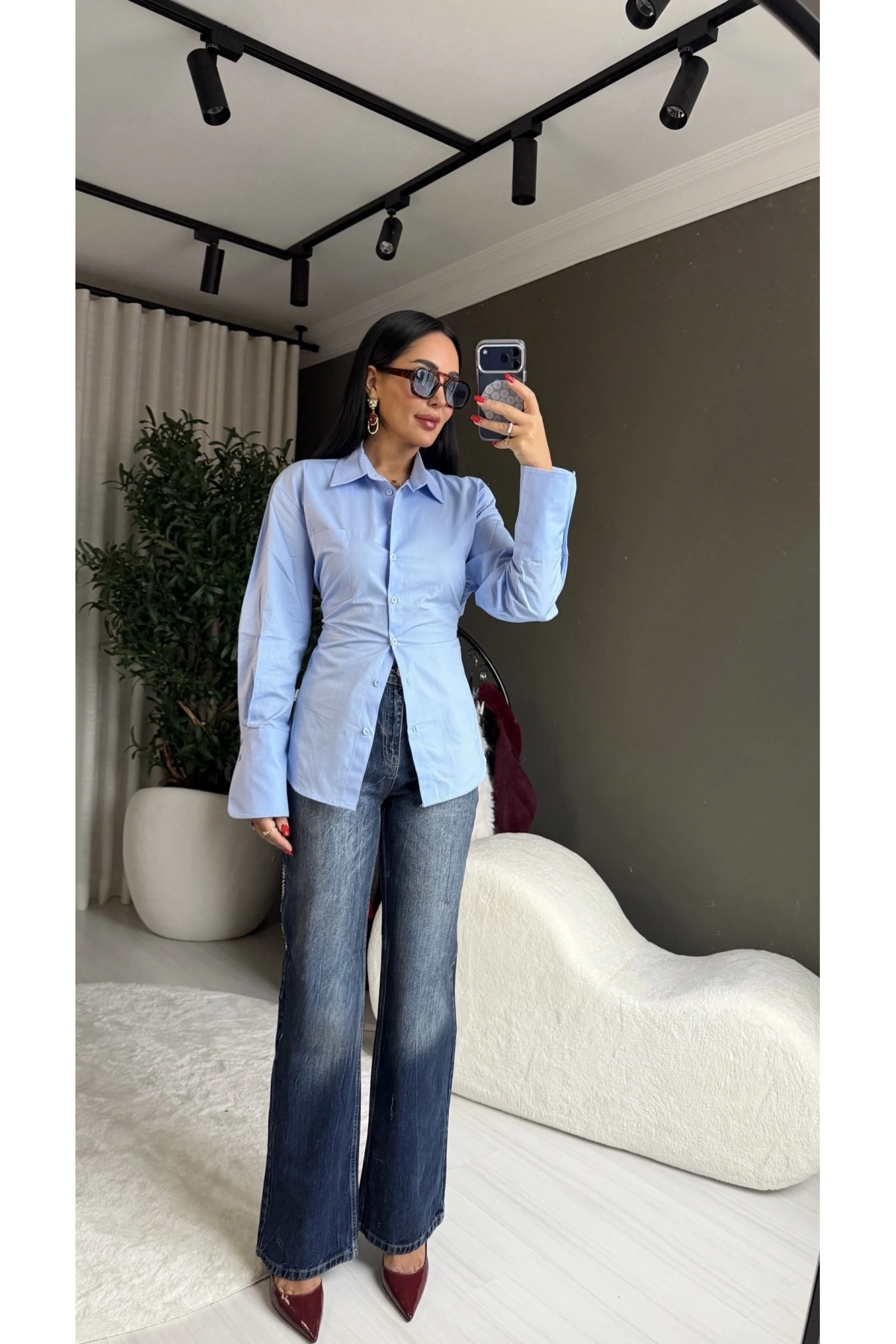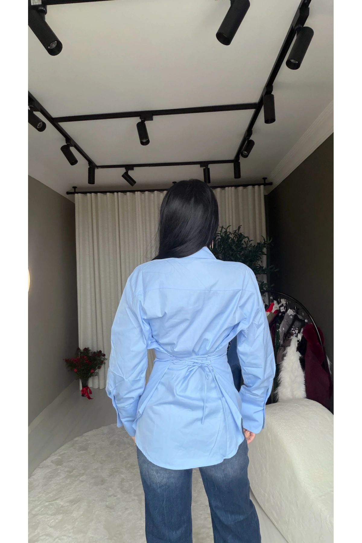 Arkası Bağlamalı Deyaylı Mavi Gömlek