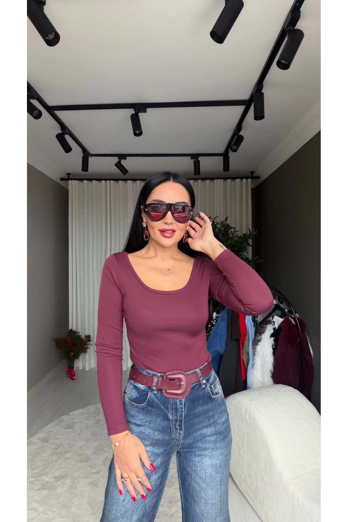 Triko Baklavalı Bordo Gri Kısa Hırka