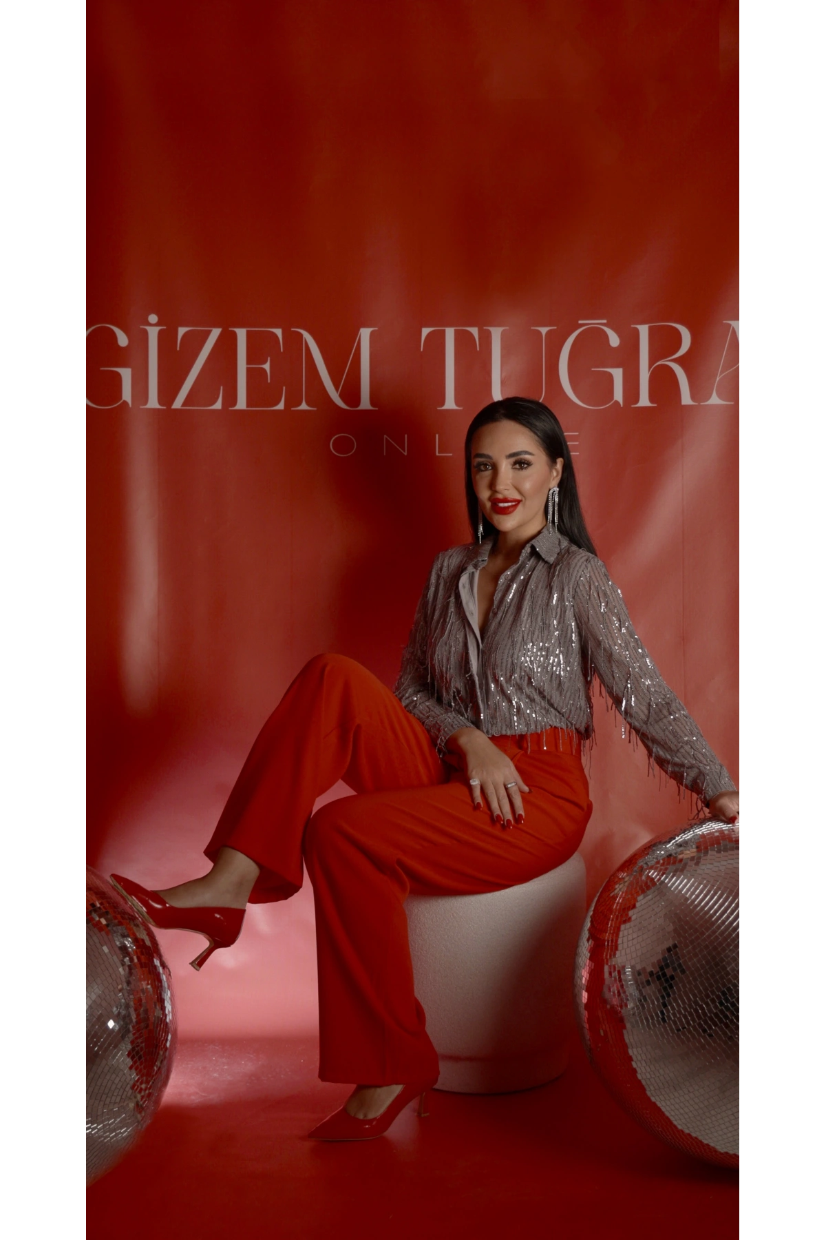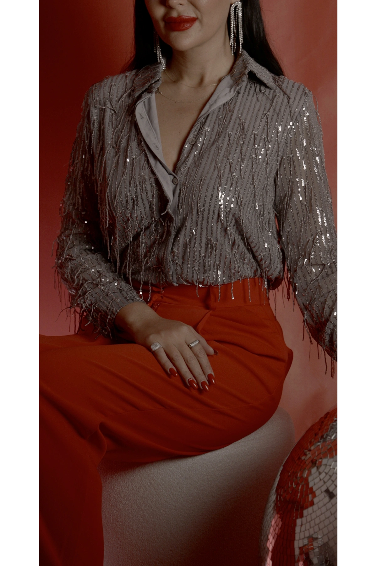 Saçaklı Püsküllü Gümüş Payet Gömlek