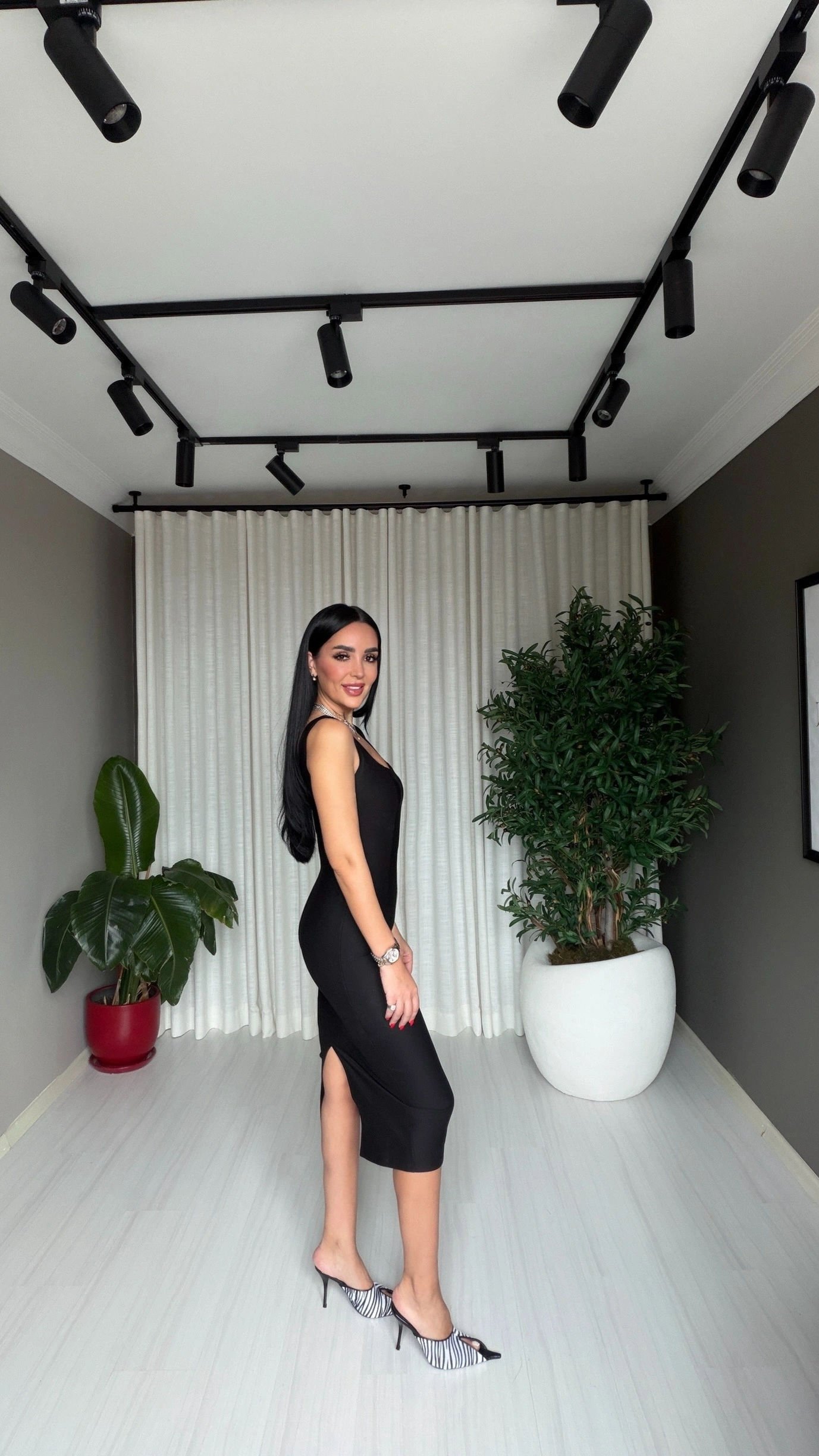 Likralı Kare Yaka Midi Siyah Elbise, modern tasarımı ve zarif duruşuyla şıklığı ve konforu bir arada sunan özel bir parçadır. Günlük kombinlerden özel davetlere kadar birçok farklı ortamda rahatlıkla tercih edilebilen bu elbise, sade ama etkileyici tarzıyla dikkat çeker.