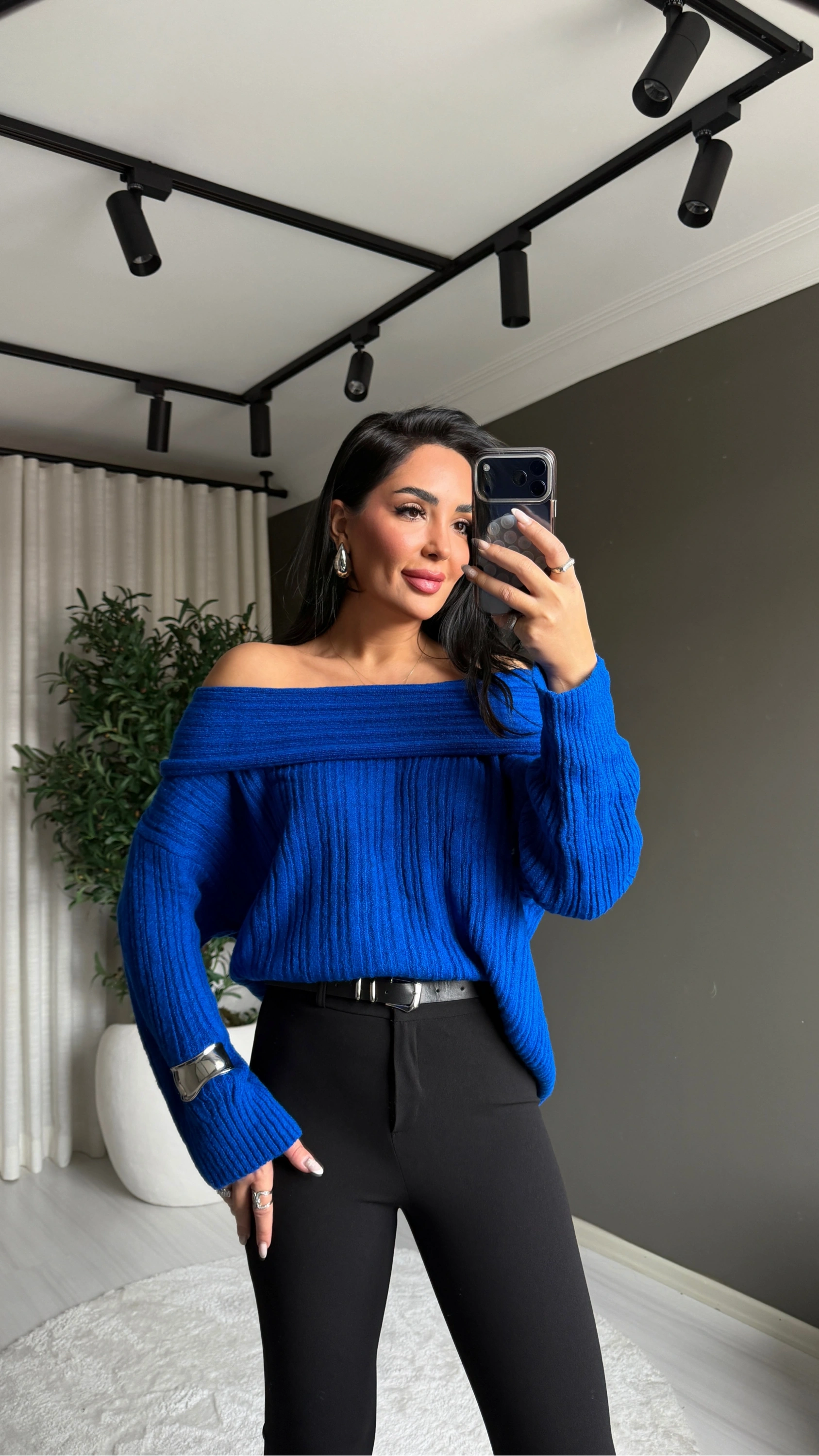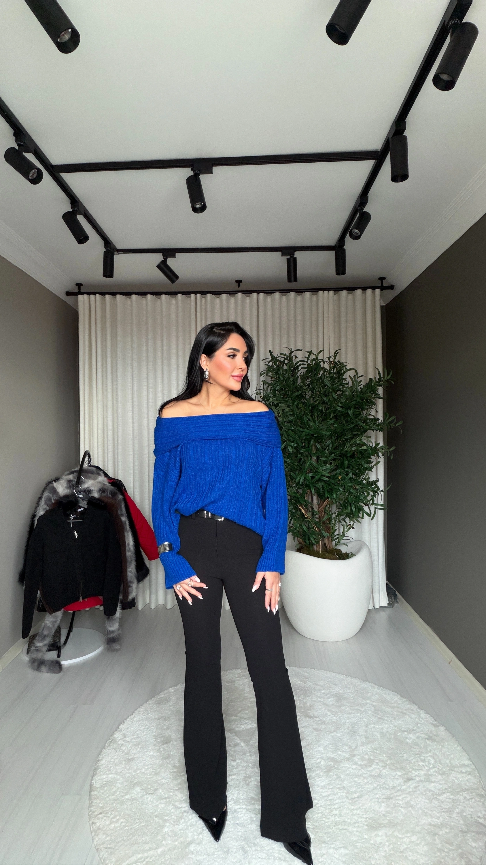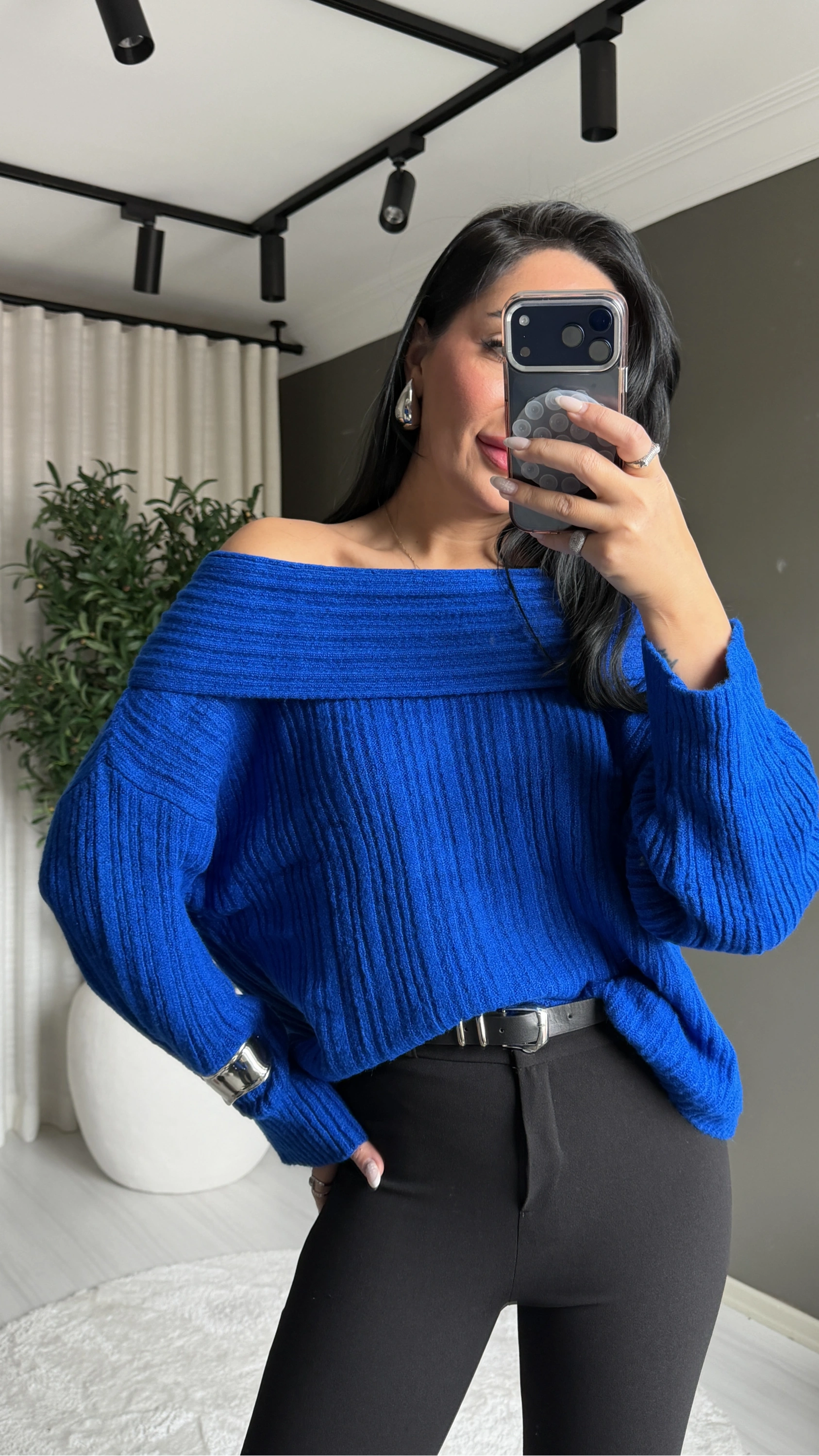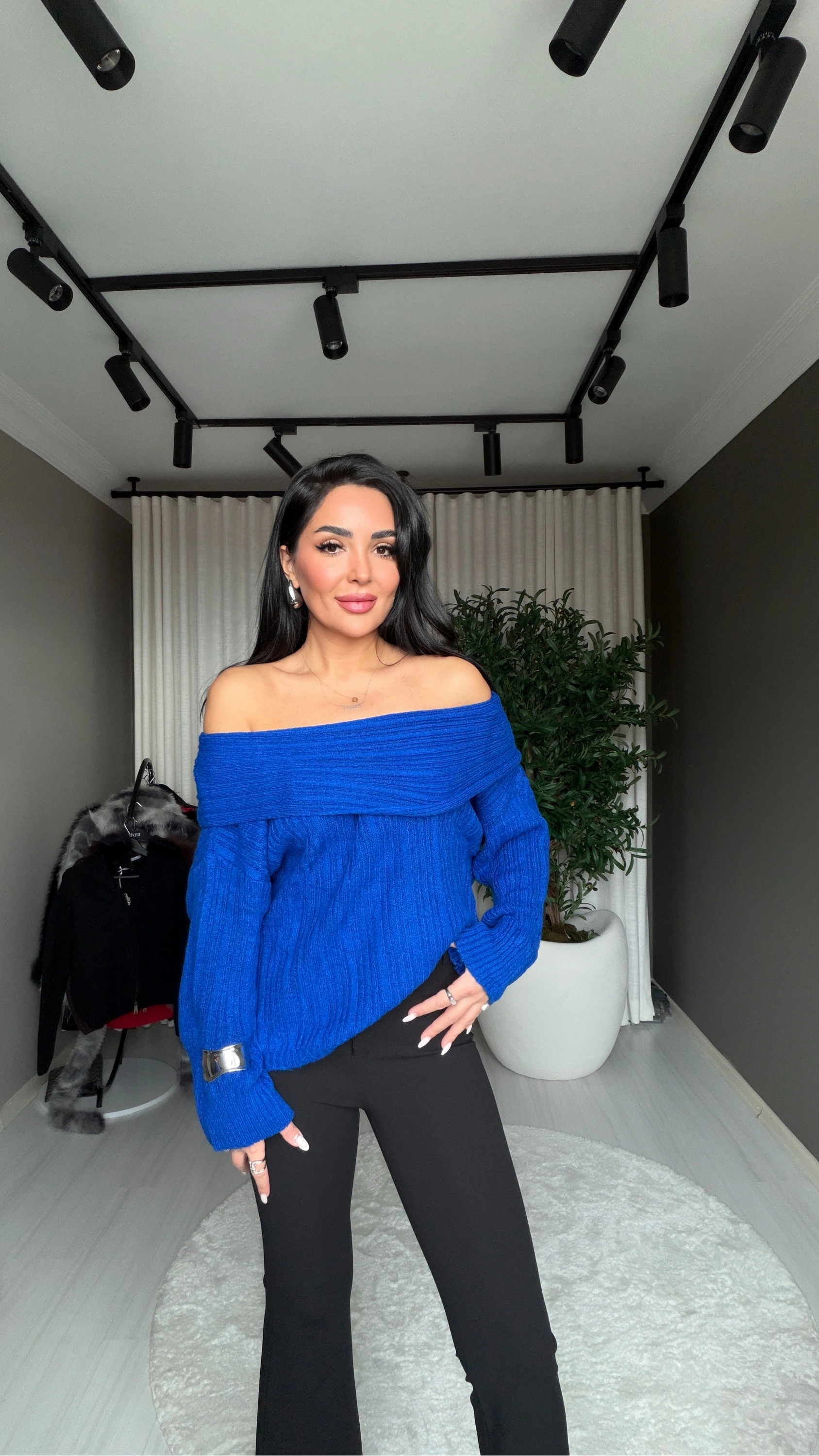 Canlı rengi ve feminen kesimiyle dikkat çeken bu Madonna yaka saks mavi triko kazak, hem günlük kombinlerde hem de özel davetlerde stilinizi ön plana çıkarır. Yumuşak dokusu ve şık duruşuyla gardırobunuzun vazgeçilmez parçası olacak.