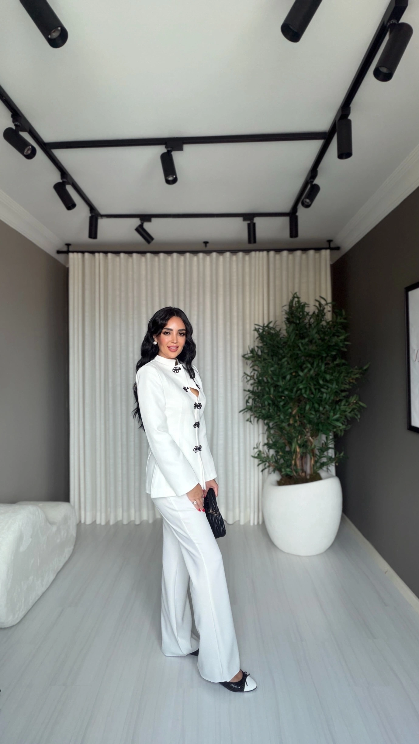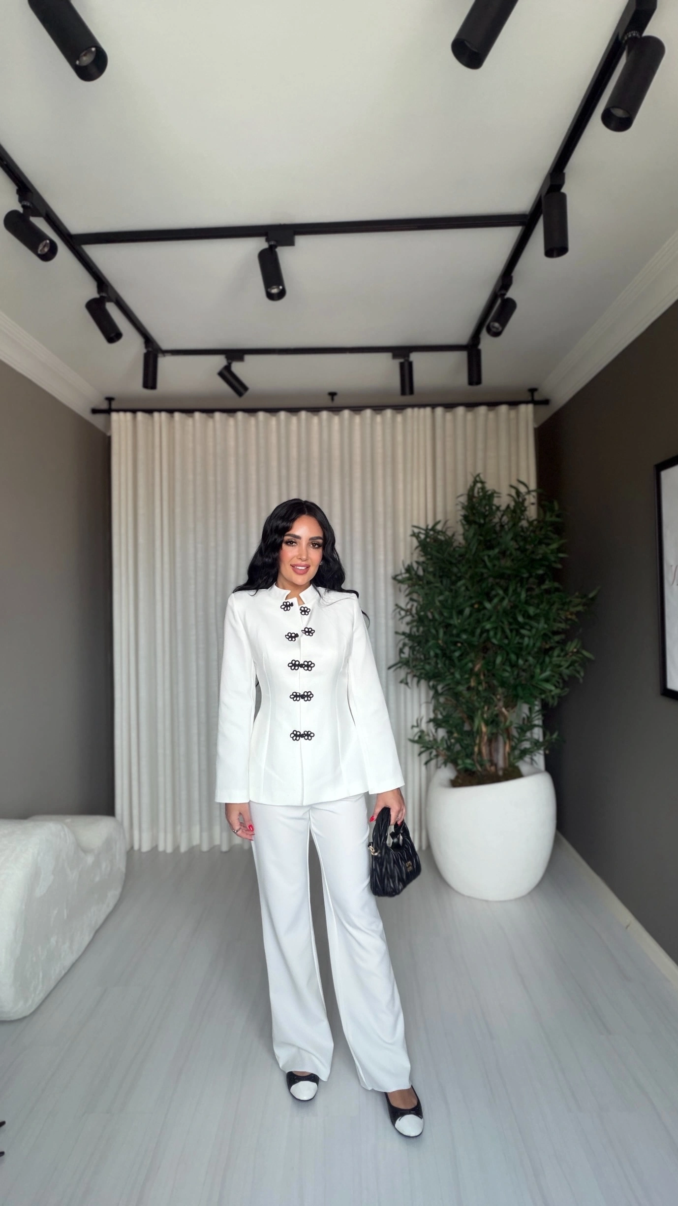 Modern ve sofistike tarzın en etkileyici parçalarından biri olan Napolyon düğme detaylı beyaz takım, zarafeti ve güçlü duruşu bir araya getiriyor. Özel tasarımıyla dikkat çeken bu takım, hem günlük kombinlerde hem de özel davetlerde stilinizi ön plana çıkarır.