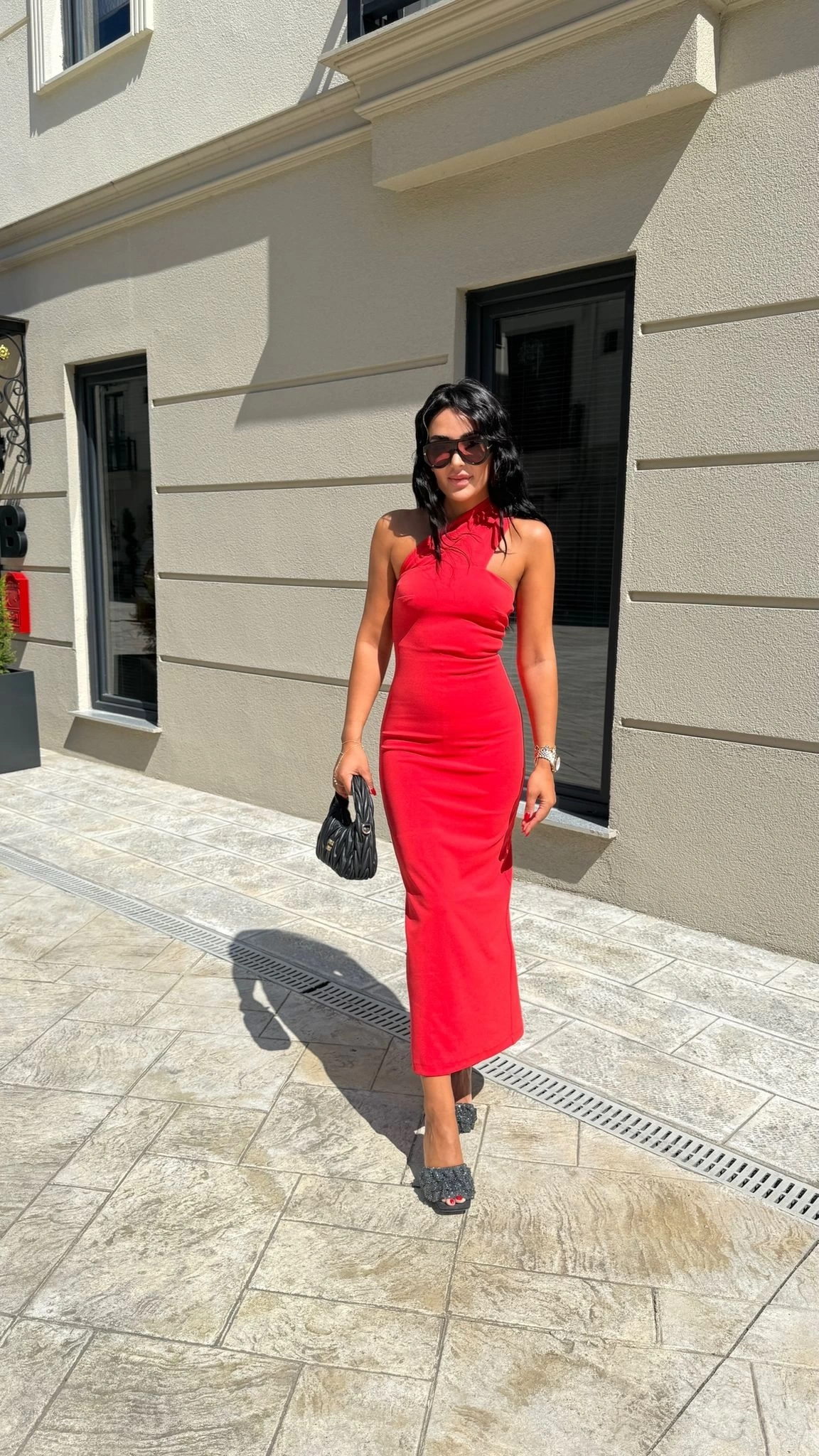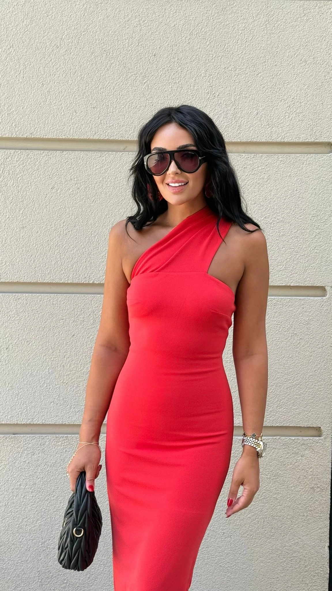 Midi Boy Tek Omuz Elbise Nar Çiçeği