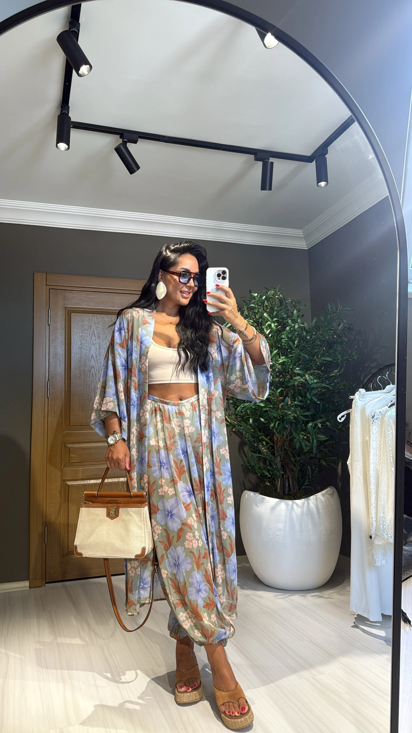 NM Karışık Desenli Kimono-Pantolon Takım Yeşil