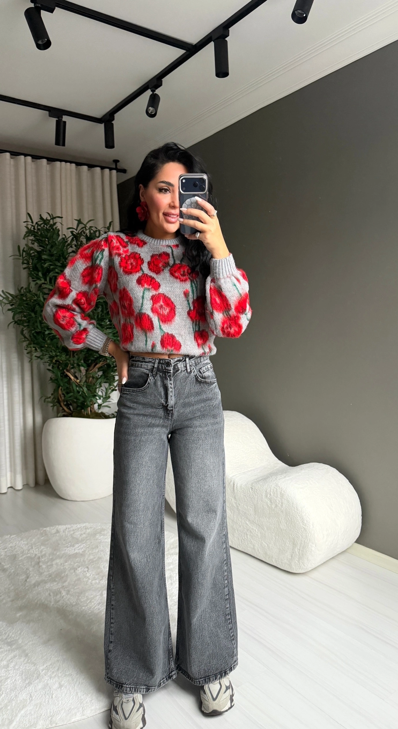?️ Gardırobunuza hem konforlu hem de şık bir parça eklemek istiyorsanız, bu orijinal markalı geniş paça gri likralı jean pantolon tam size göre!