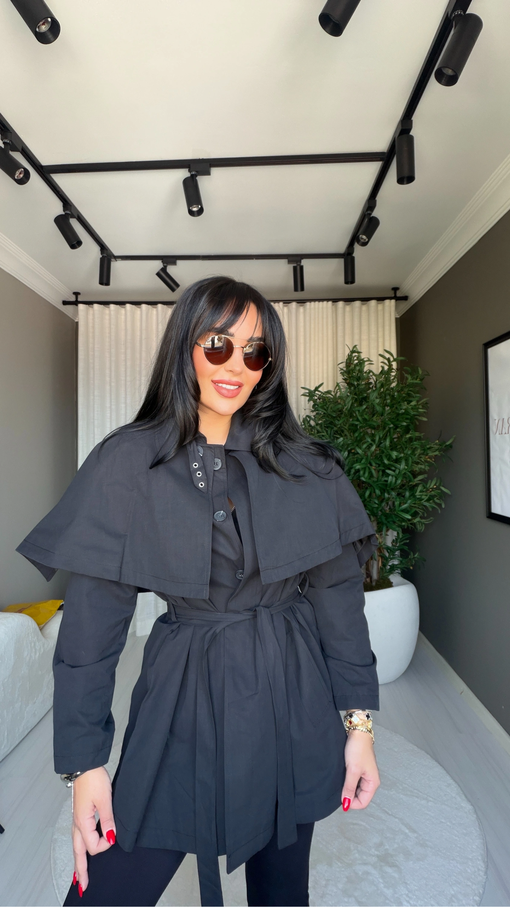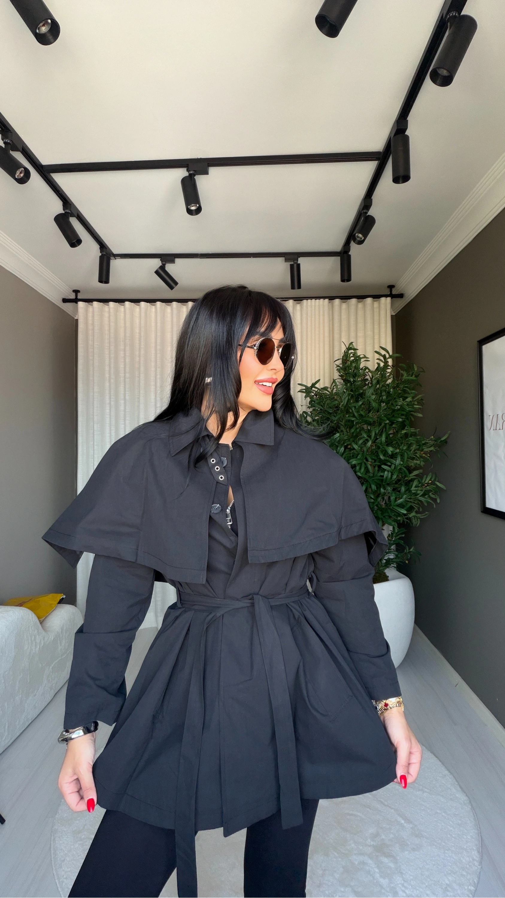Zamansız stilin vazgeçilmez parçası olan siyah trençkot, şimdi pelerin detayı ile yeniden yorumlanıyor! Hem klasik hem de modern çizgileri bir araya getiren bu özel tasarım, şehir hayatında stil sahibi görünmek isteyenler için ideal bir seçim sunar.