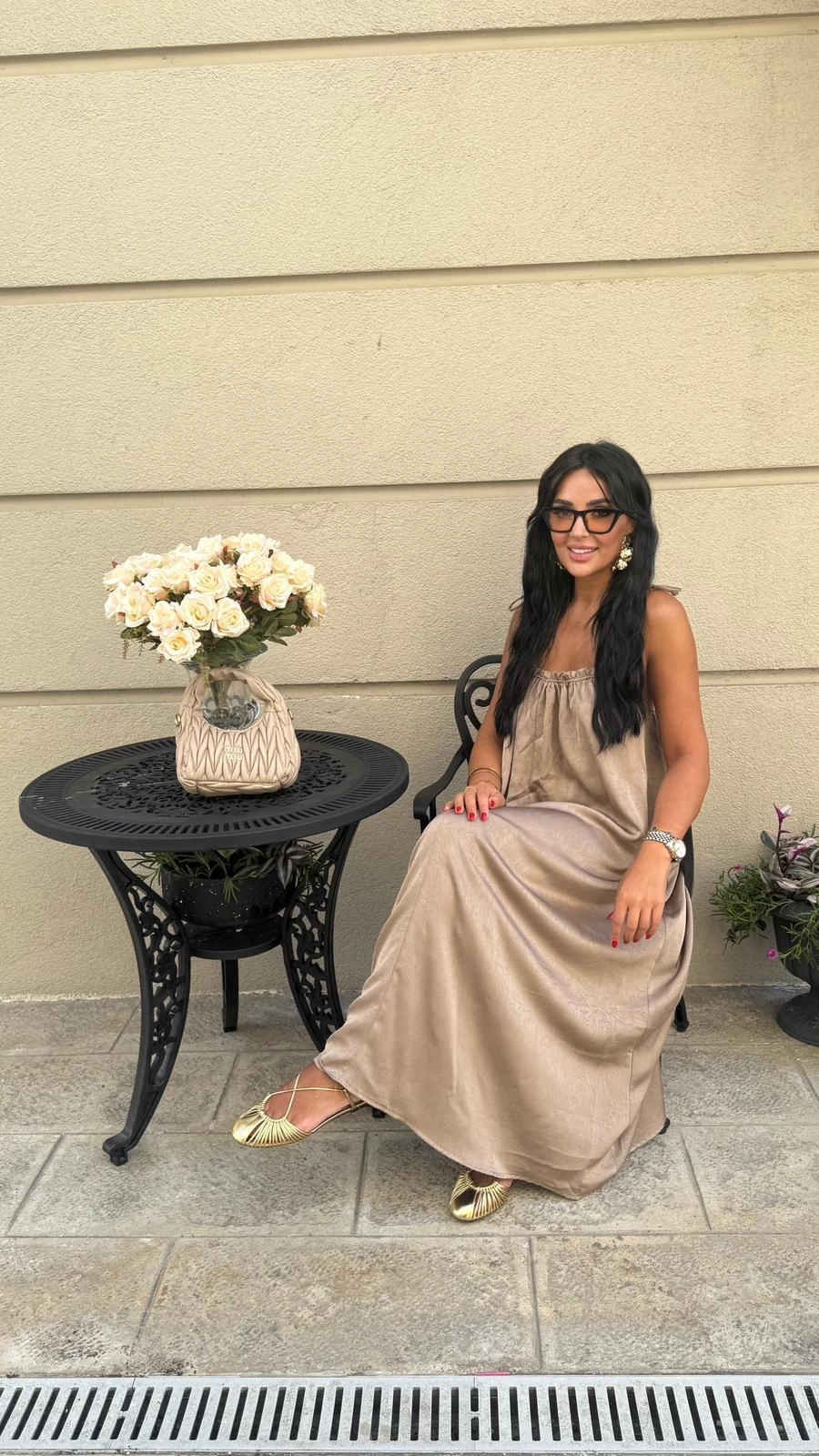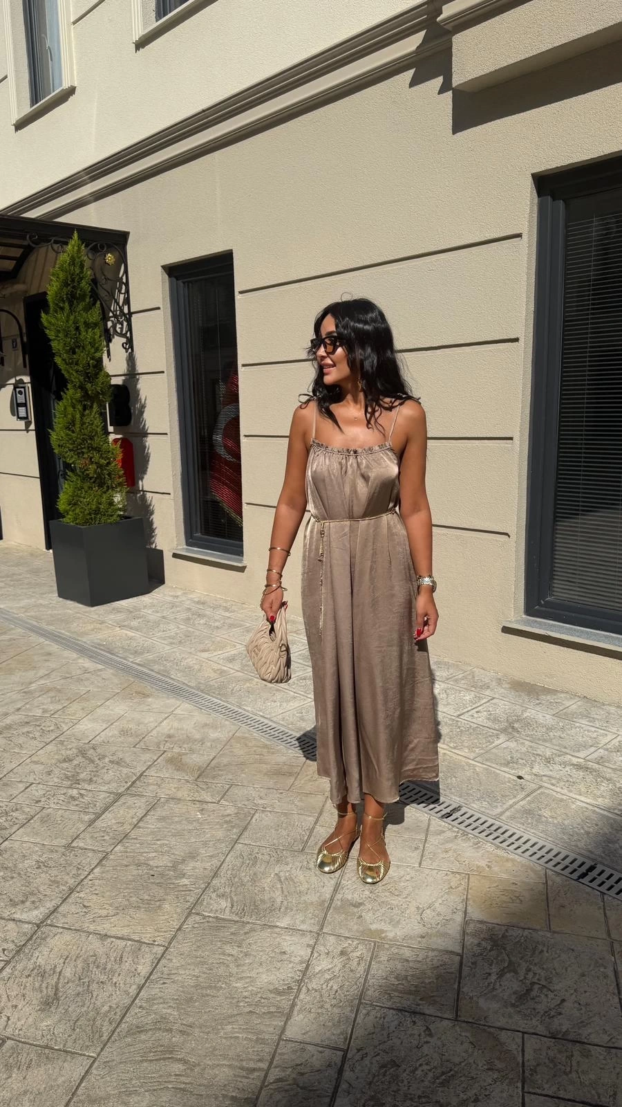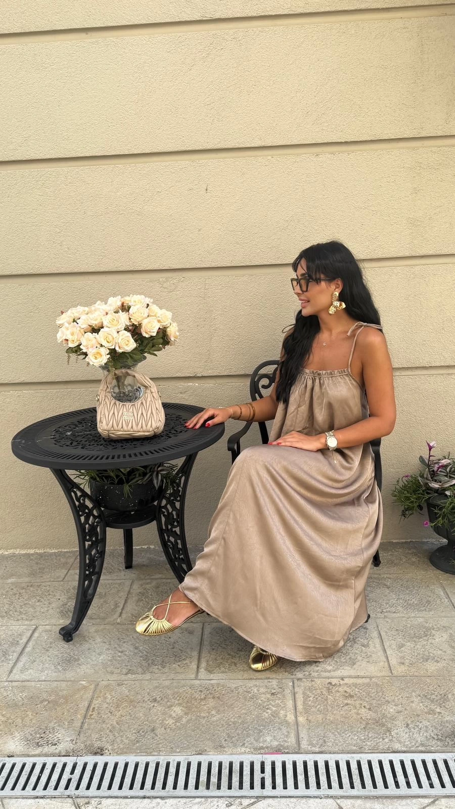 Perry Askılı Sırtı Açık Seten Maxi Elbise Bej