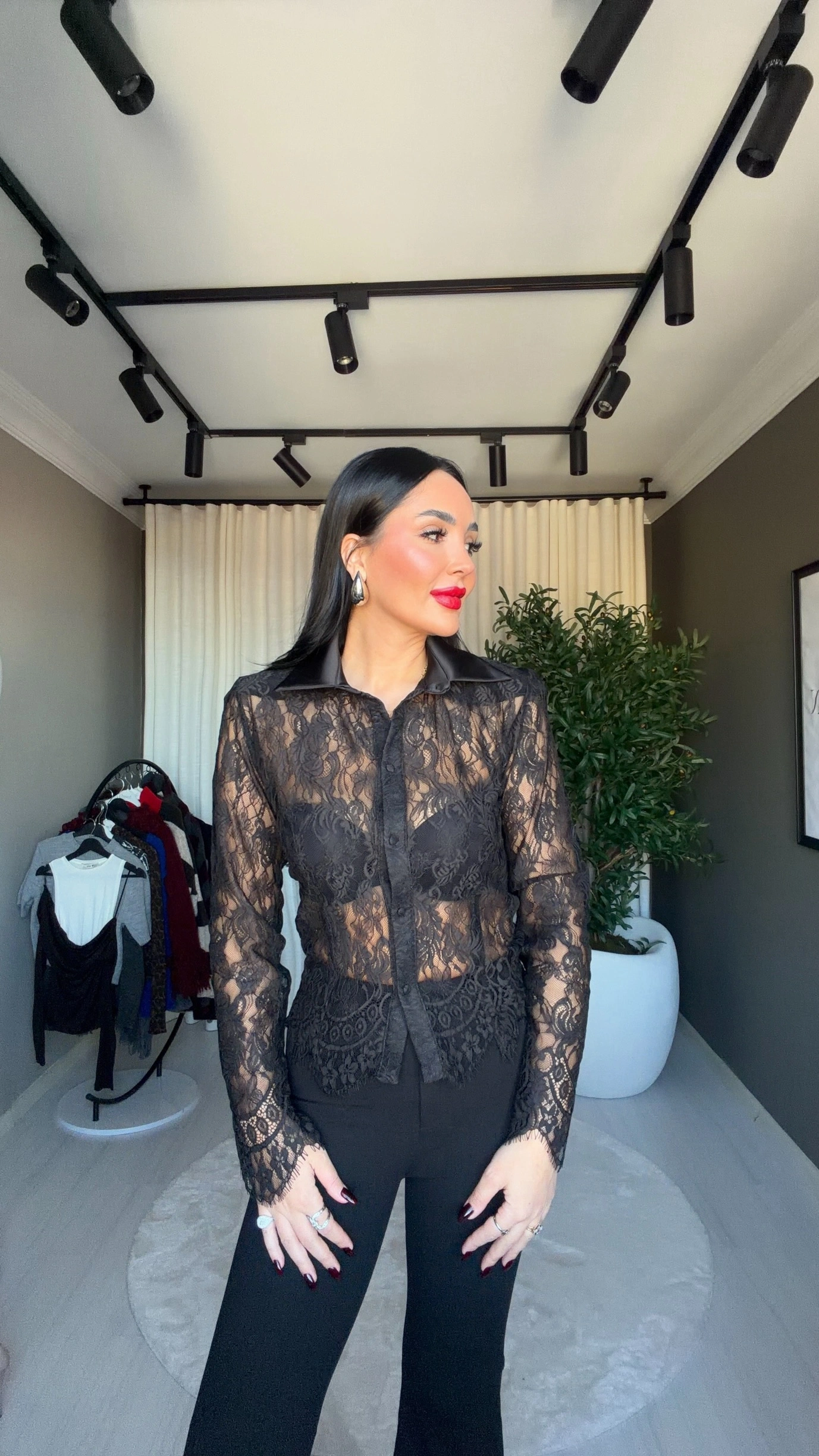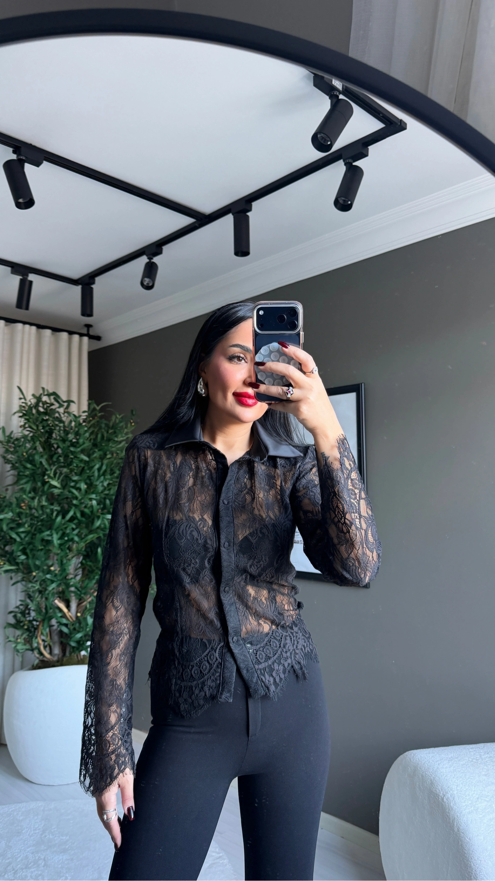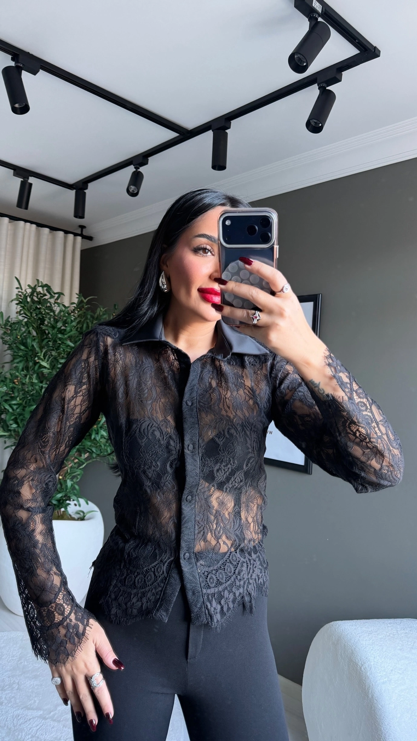 ✨ Dantel Detaylı Transparan Siyah Gömlek ✨
