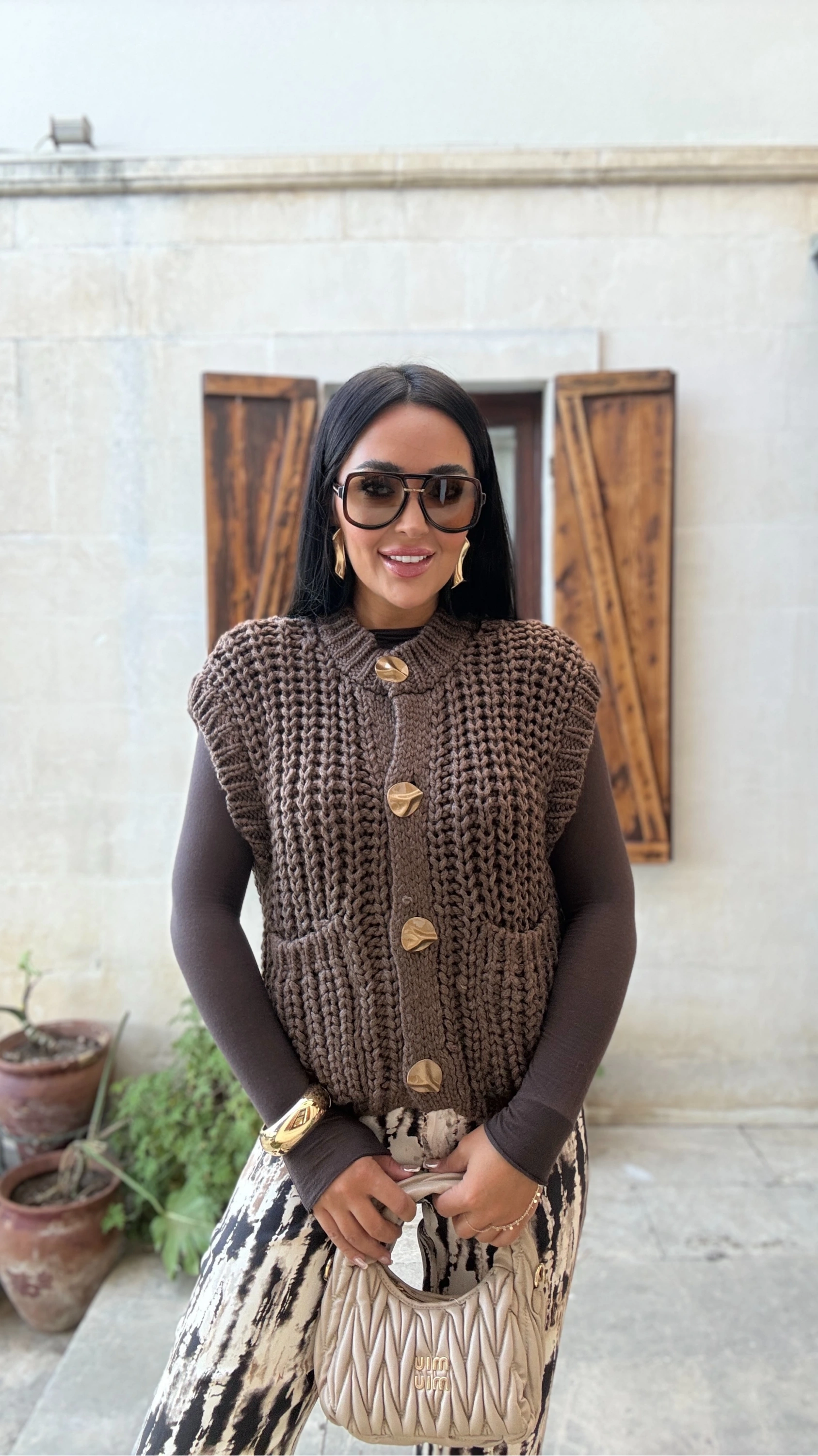 Dolabınızda yalnızca bir parça değişikliğe giderek stilinizde fark yaratmak istiyorsanız, bu büyük beden kahverengi triko yelek tam size göre. Gold düğmeli detayıyla kadınsı ve zarif bir ifade kazanırken, triko kumaşı ve geniş bedeniyle konforu da garanti eder. Şimdi seçin — şıklığınızı bir üst seviyeye taşıyın!