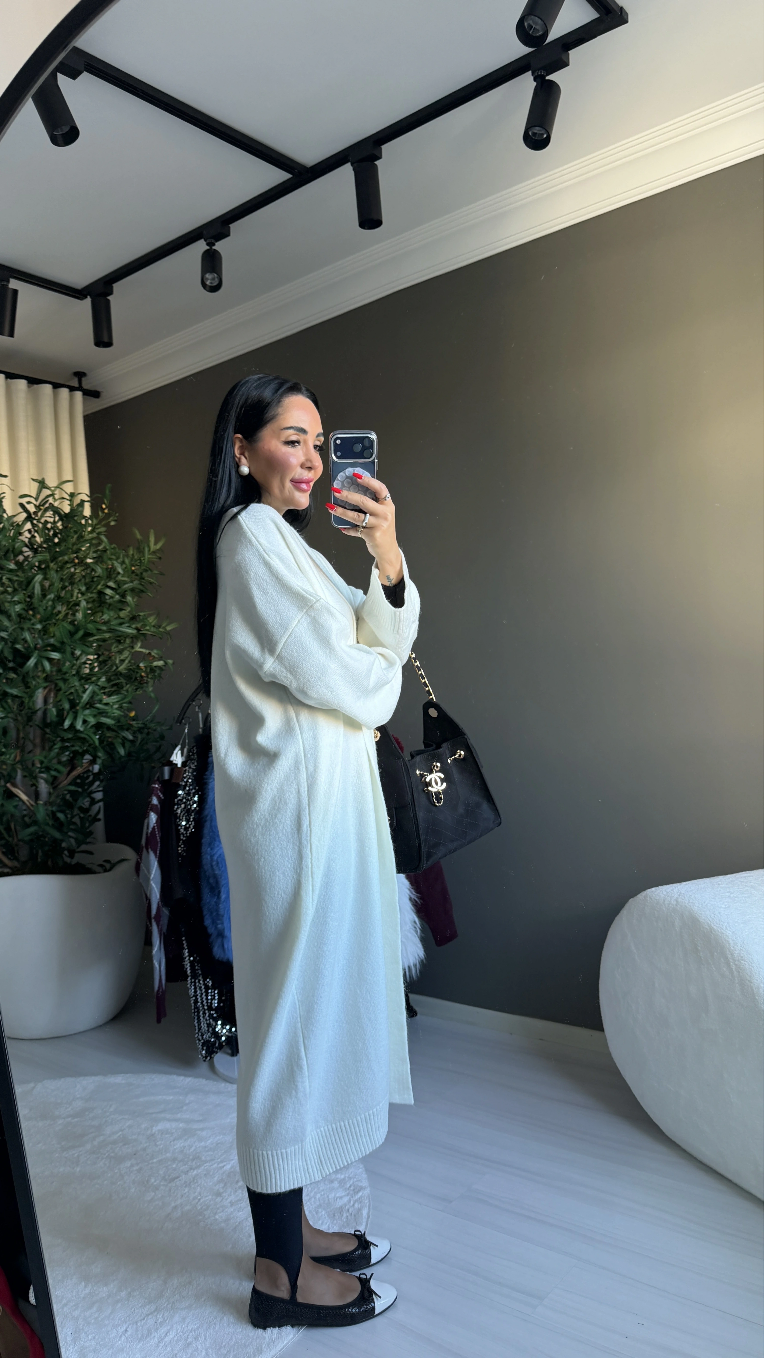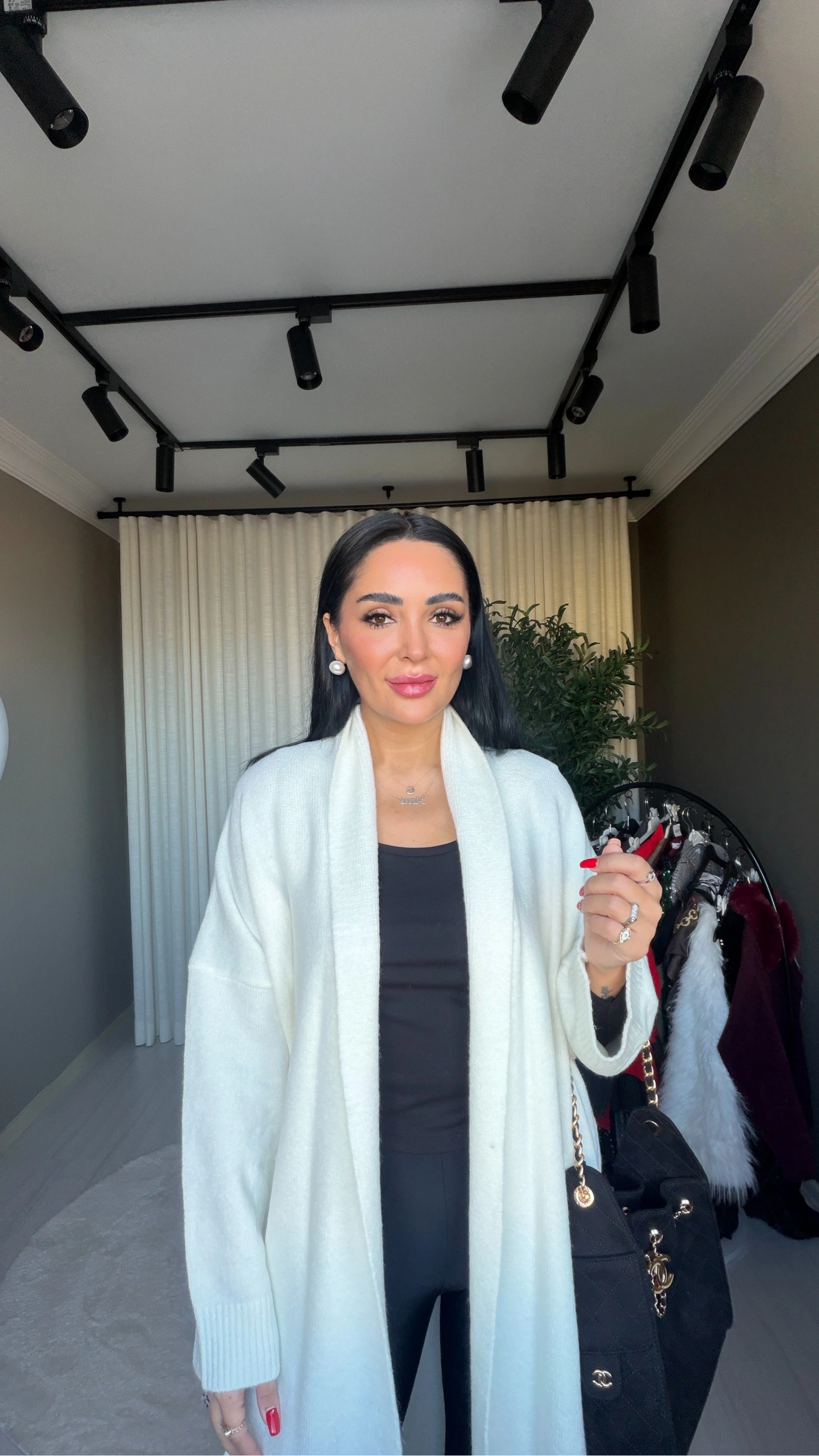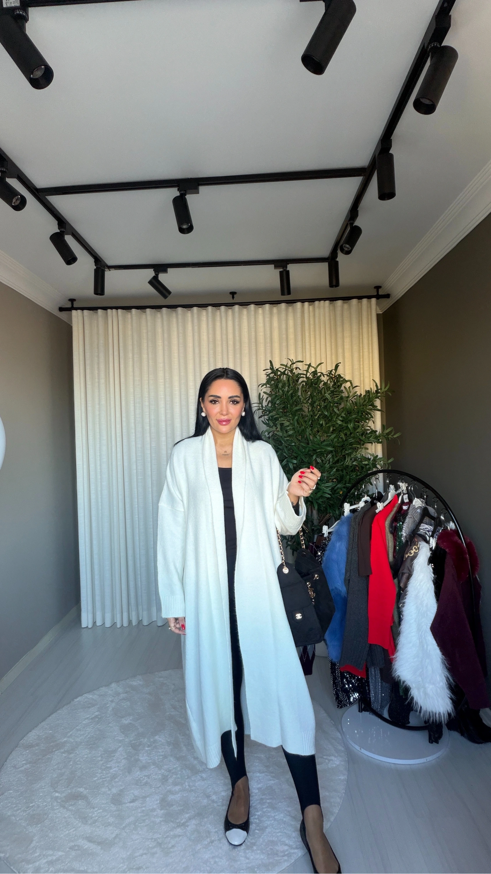 Ekru Triko Maksi Boy Uzun Hırka – Zarafetin ve Konforun Buluşması ✨