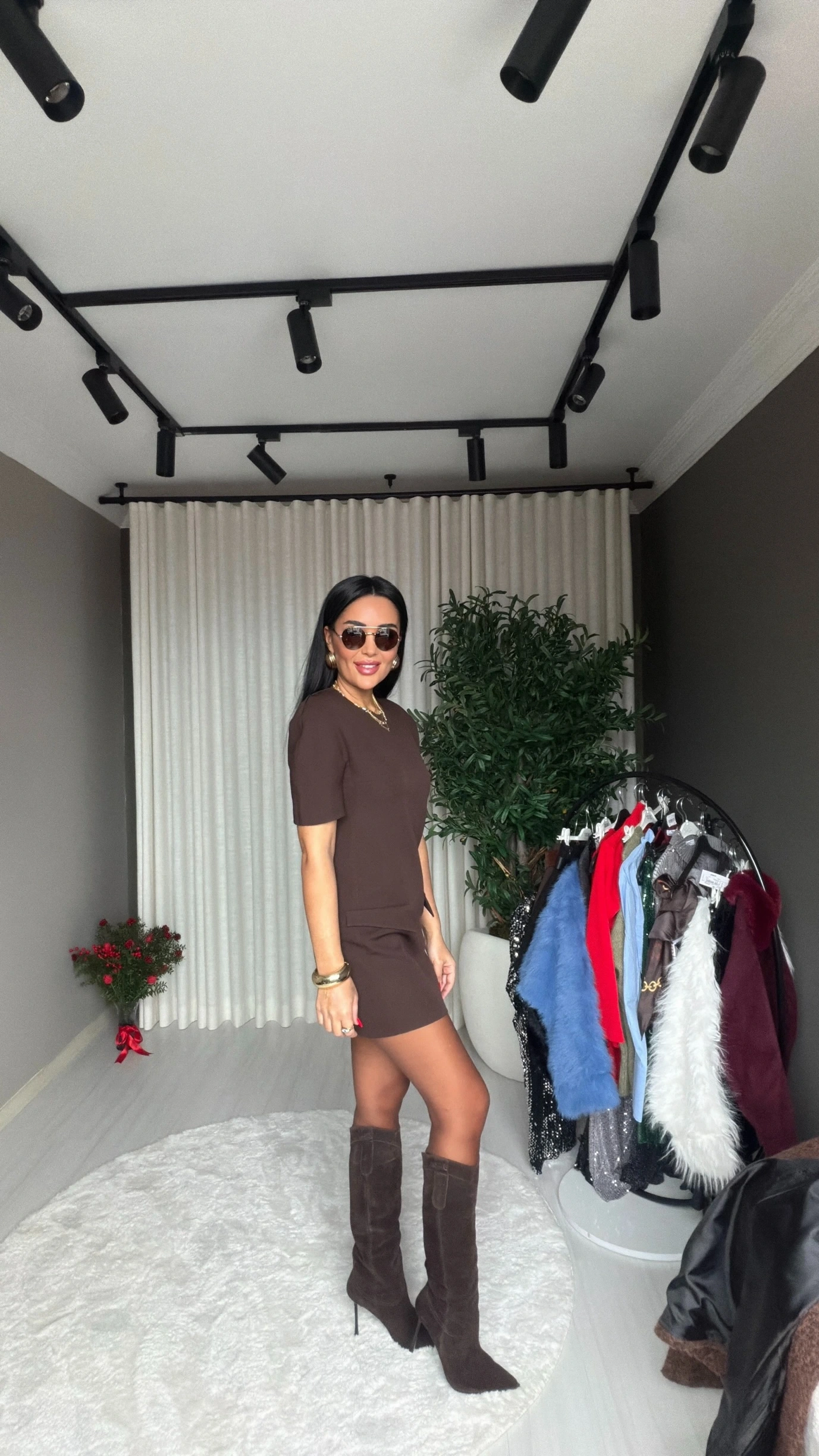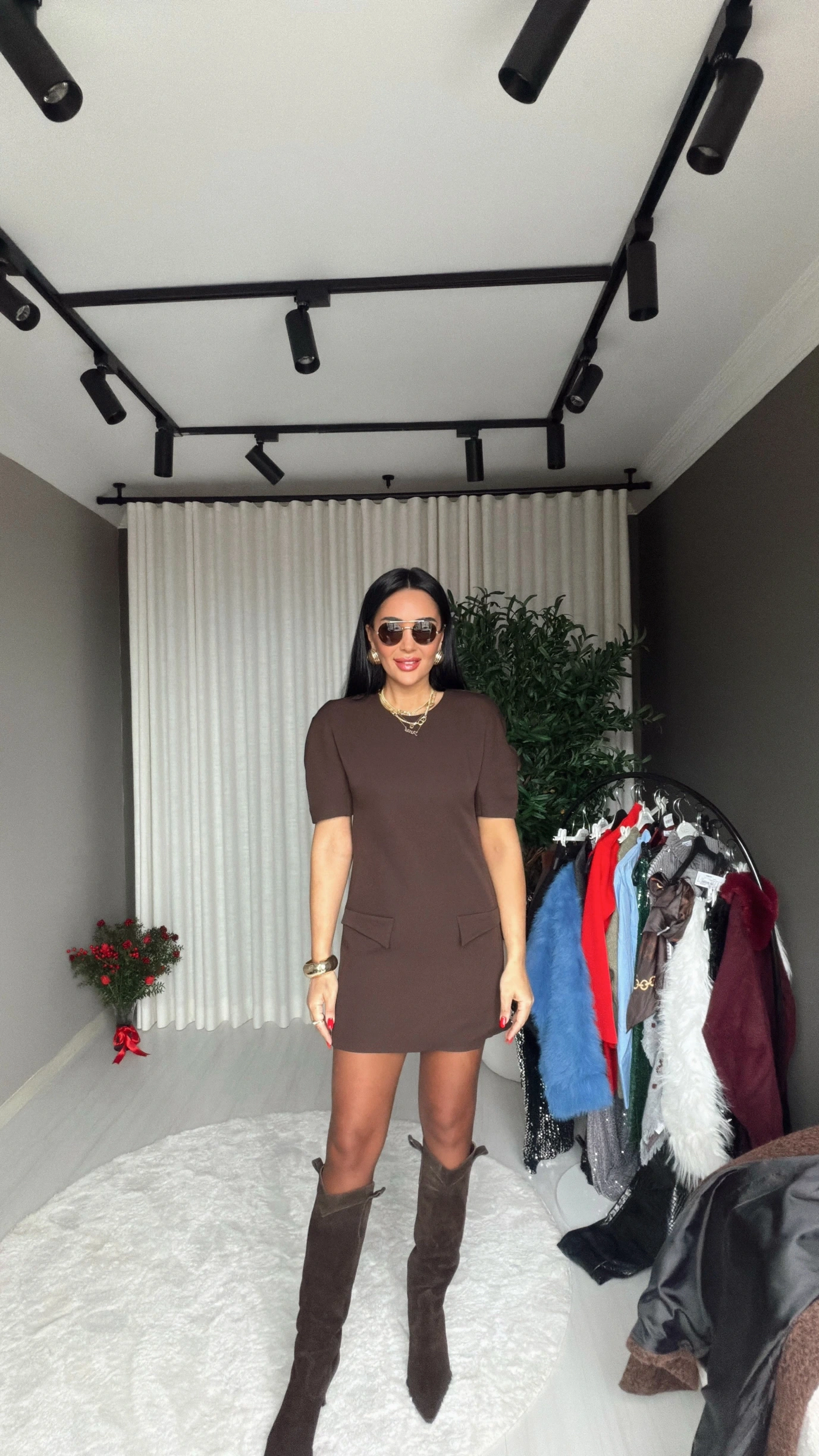 Modern ve güçlü bir stile vurgu yapan kahverengi, geniş omuzlu, vatka detaylı mini elbise, sezonun en trend siluetlerinden birini sunuyor. Geniş omuz tasarımı ve bel hatlarını öne çıkaran mini formu, hem zarif hem de iddialı bir görünüm elde etmenizi sağlar.