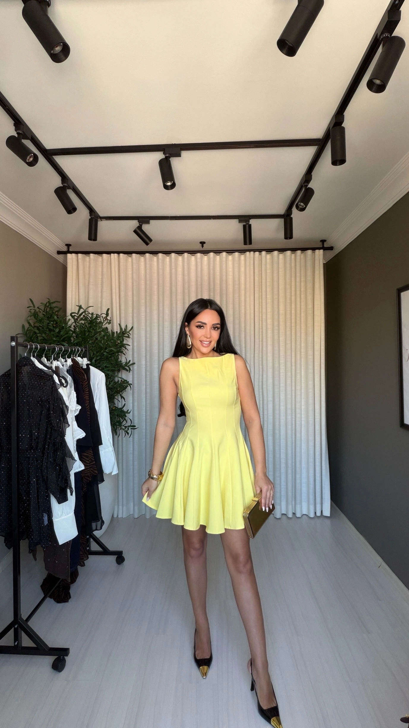 Mini Kloş Volanlı Sarı Elbise, enerjik rengi ve feminen tasarımıyla stilinize canlılık katan şık bir parçadır. Modern ve zarif görünümü sayesinde günlük kombinlerden özel davetlere kadar birçok farklı ortamda rahatlıkla tercih edilebilir. Hareketli yapısı ve dikkat çekici rengi ile yaz ve bahar aylarının vazgeçilmez elbiseleri arasında yer alır.