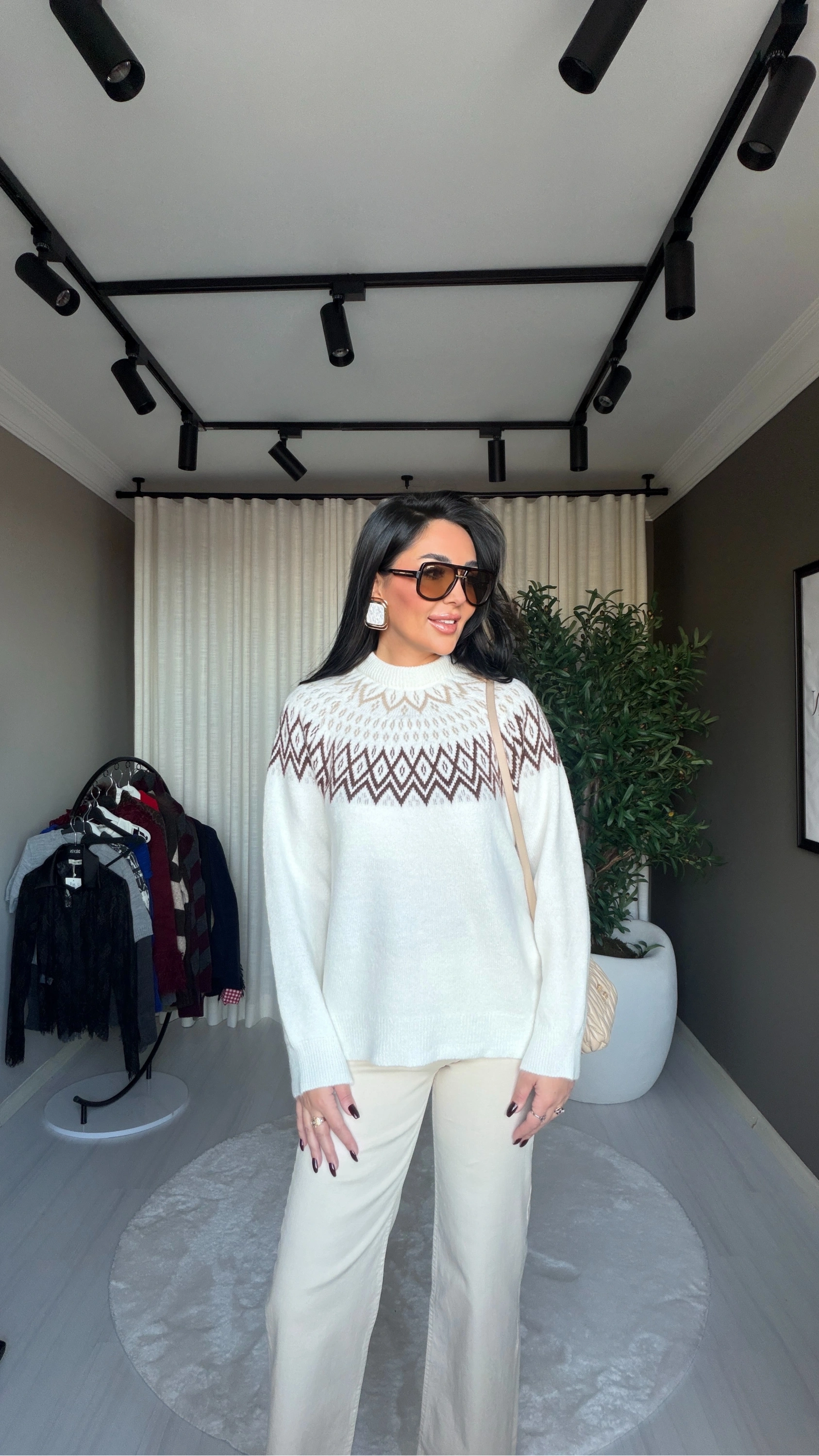 Soğuk havalarda stilinizden ödün vermeyin! Yakası İskandinav desenli bu kazak, hem sıcak tutan yapısı hem de zarif tasarımıyla gardırobunuzun vazgeçilmezi olacak.