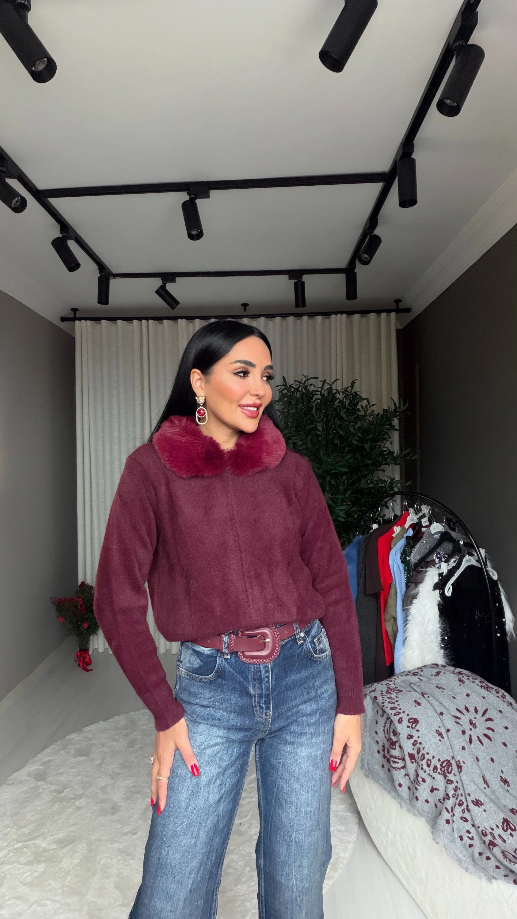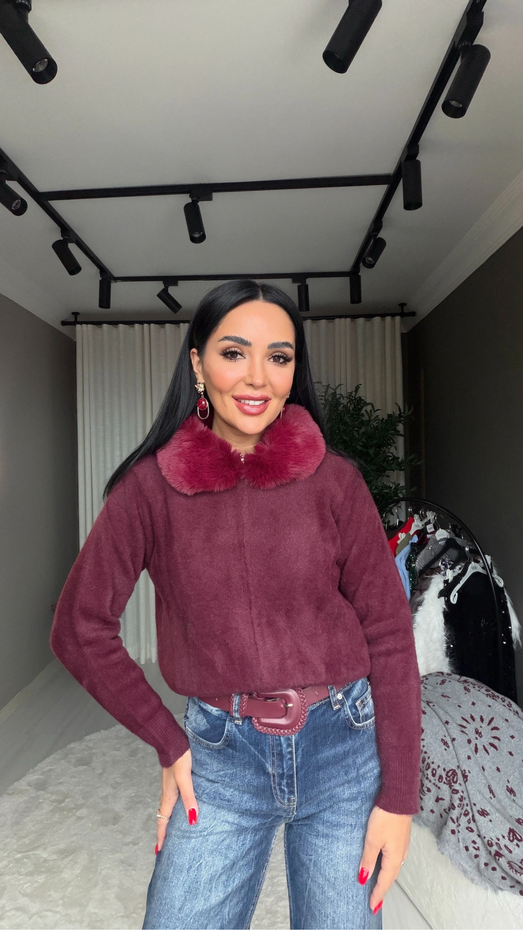 Yakası kürklü fermuarlı bordo hırka, stilinden ödün vermeden sıcak kalmak isteyenler için ideal bir seçimdir. Gardırobunuzun kurtarıcı parçası olmaya aday bu modeli hemen keşfedin!