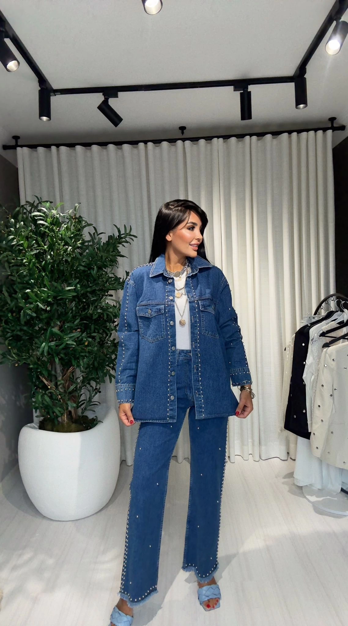 Zımba Detaylı Mavi Jean Alt Üst Takım